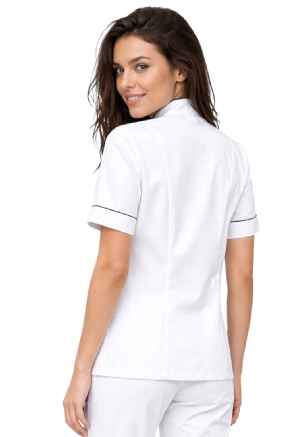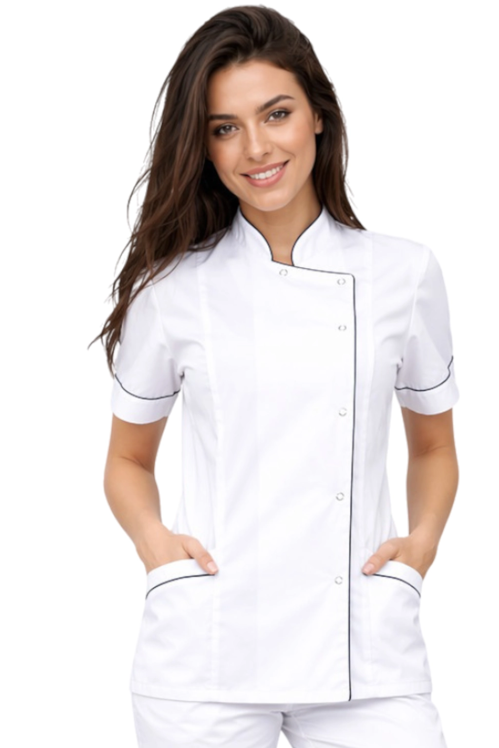 Blazer médical à boutons pression blanc avec liseré bleu marine