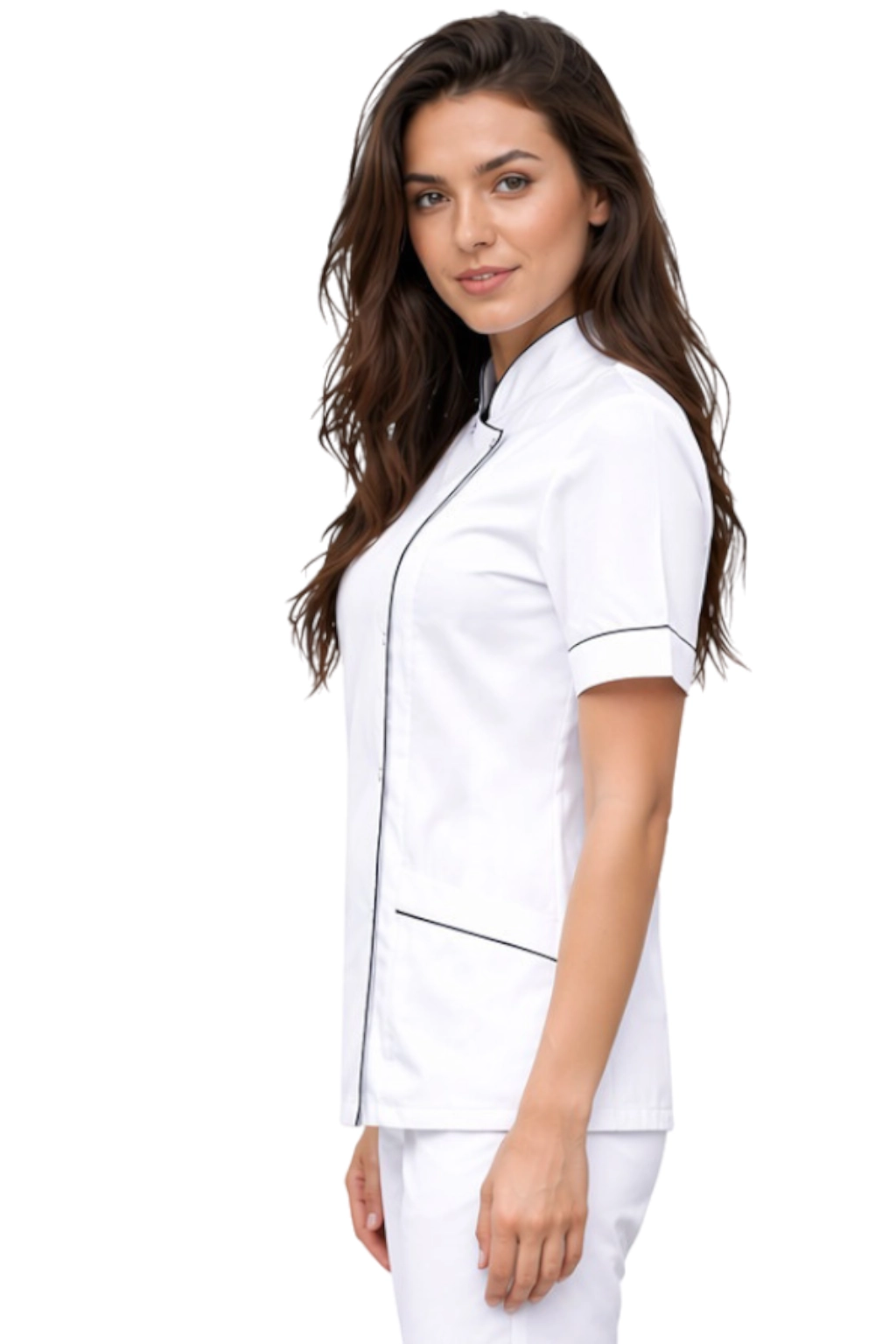 Nos vestes COSMETIC sont produites dans le but de combiner les avantages des vêtements de travail avec un design moderne, ce qui est donné par les passepoils colorés. Lorsque nous cousons nos tenues, nous cherchons à suivre la mode d'aujourd'hui