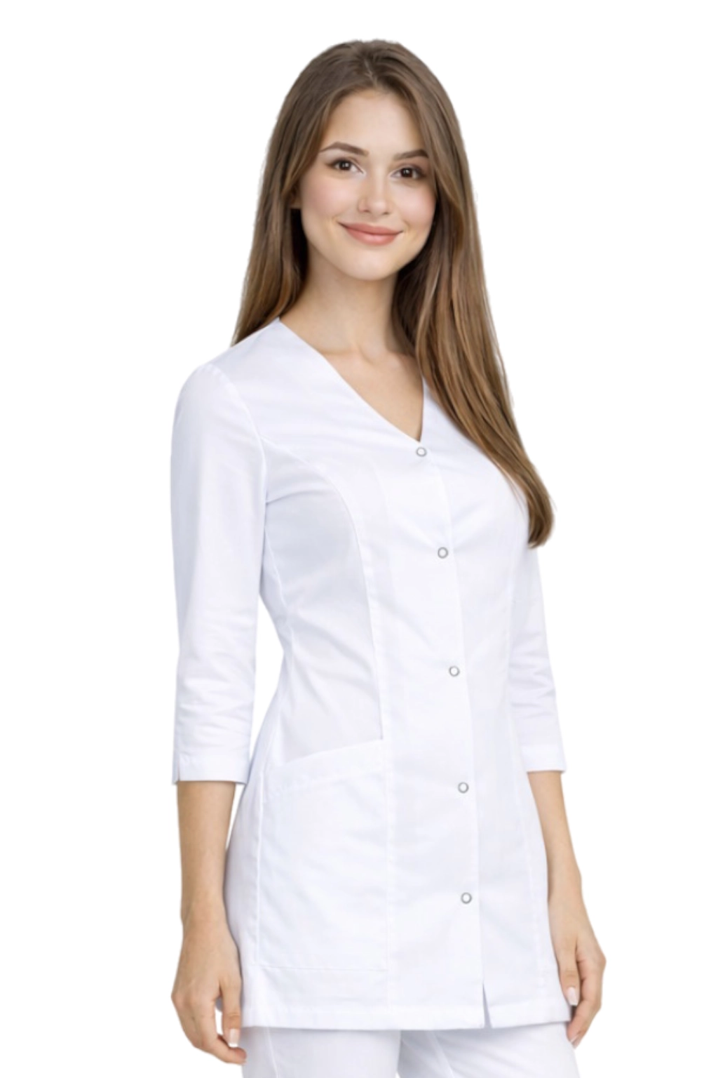 Veste médicale / esthétique féminine CASUAL PREMIUM blanche – manches 3/4
