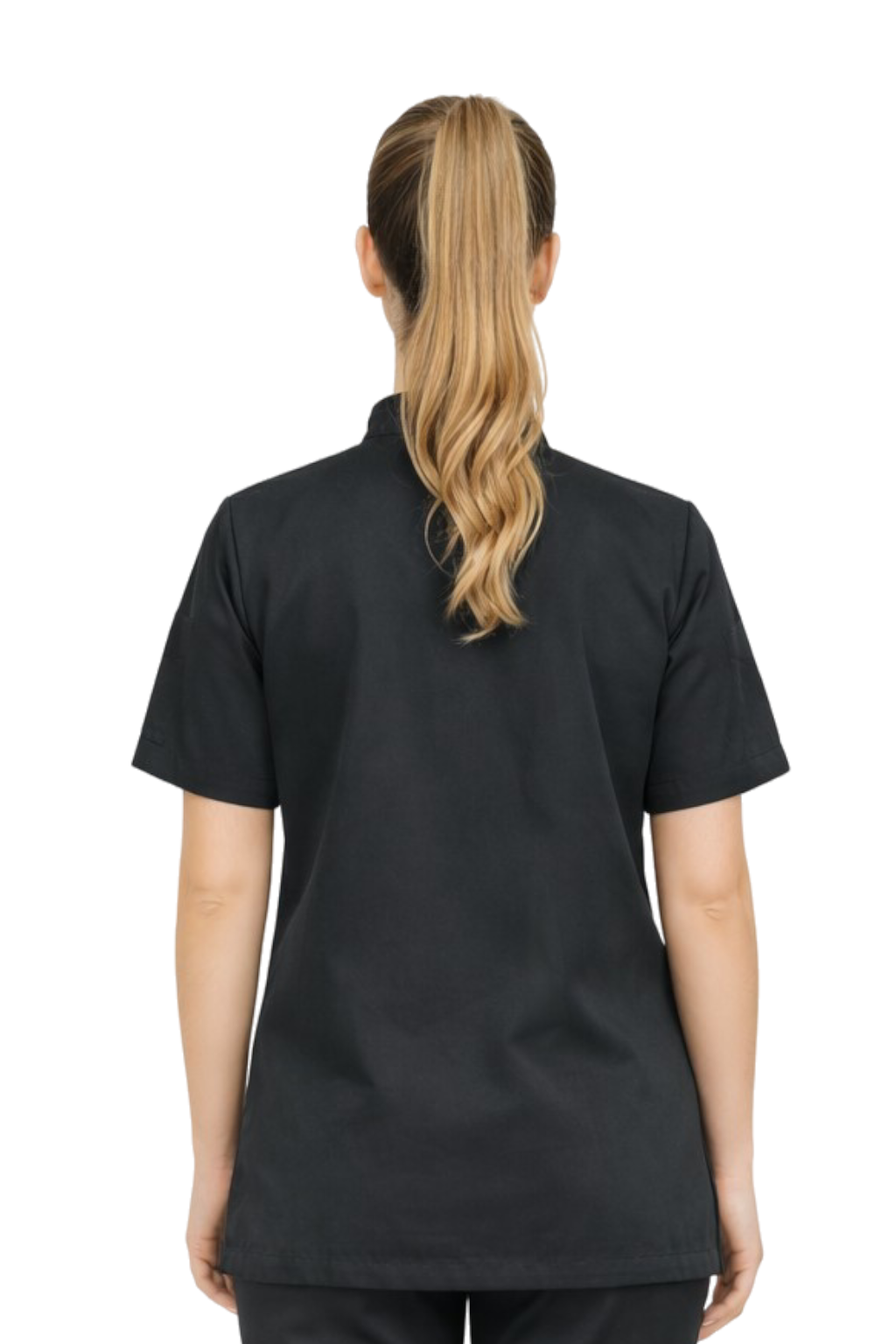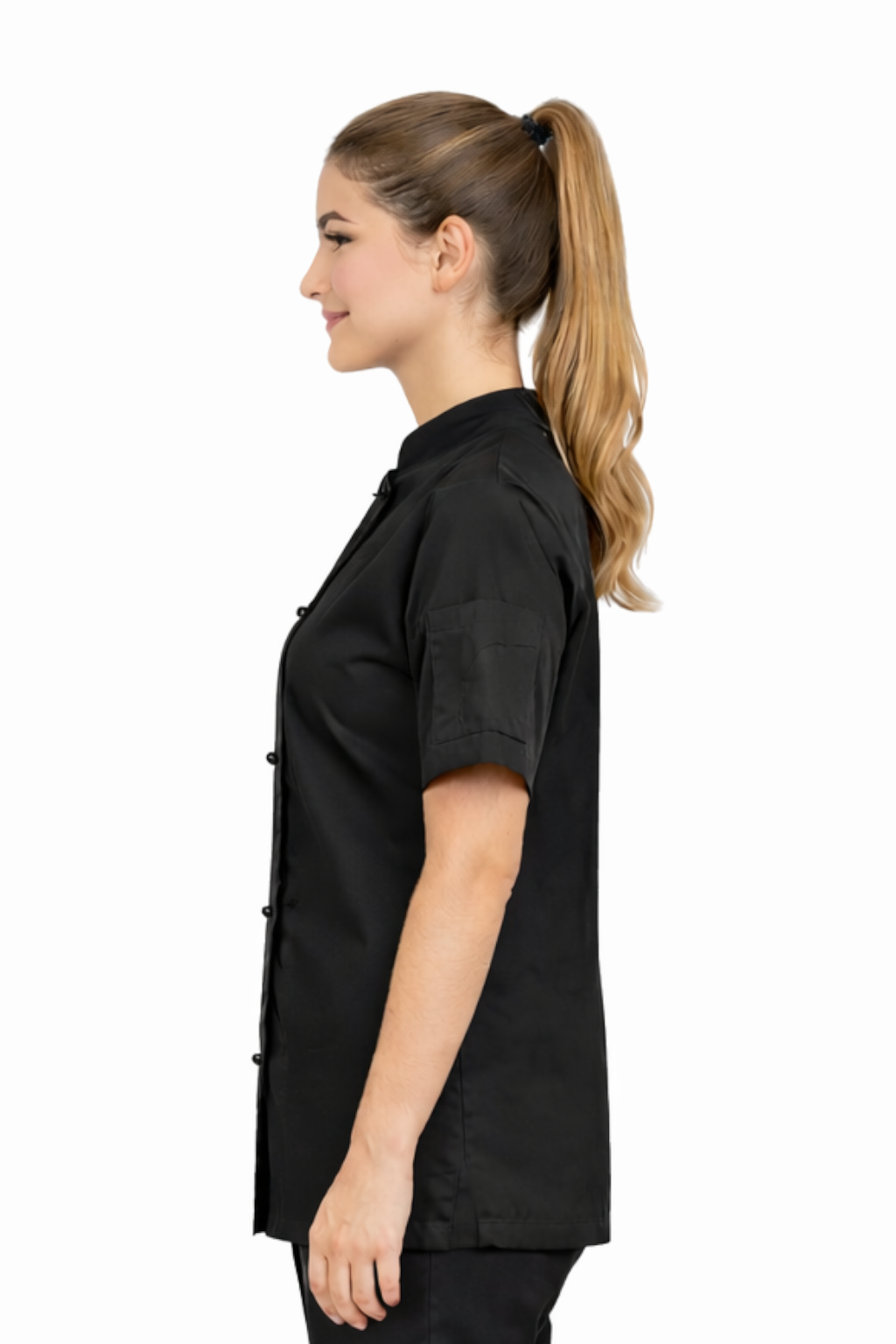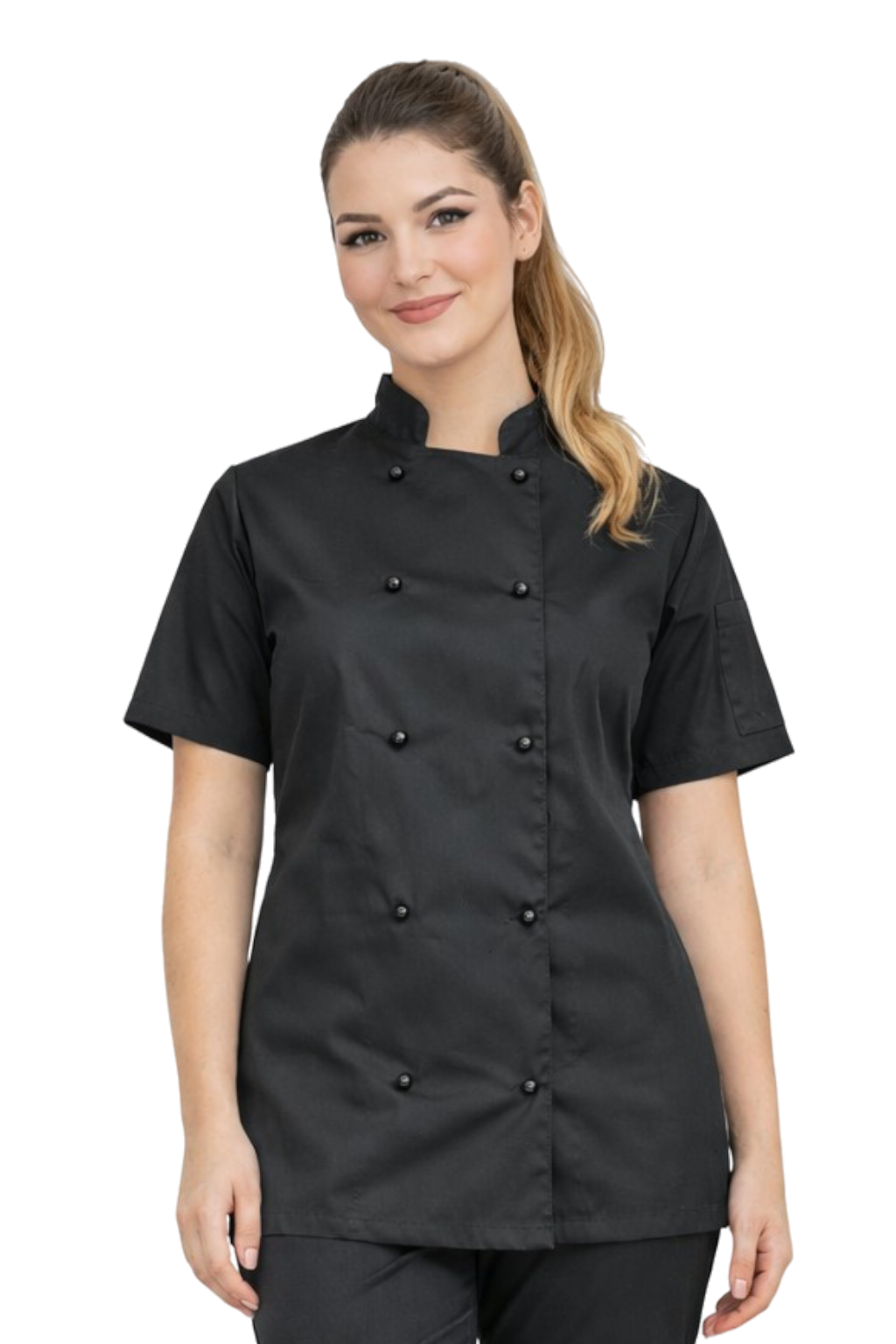Blouse de chef femme noire – veste gastronomique, à manches courtes