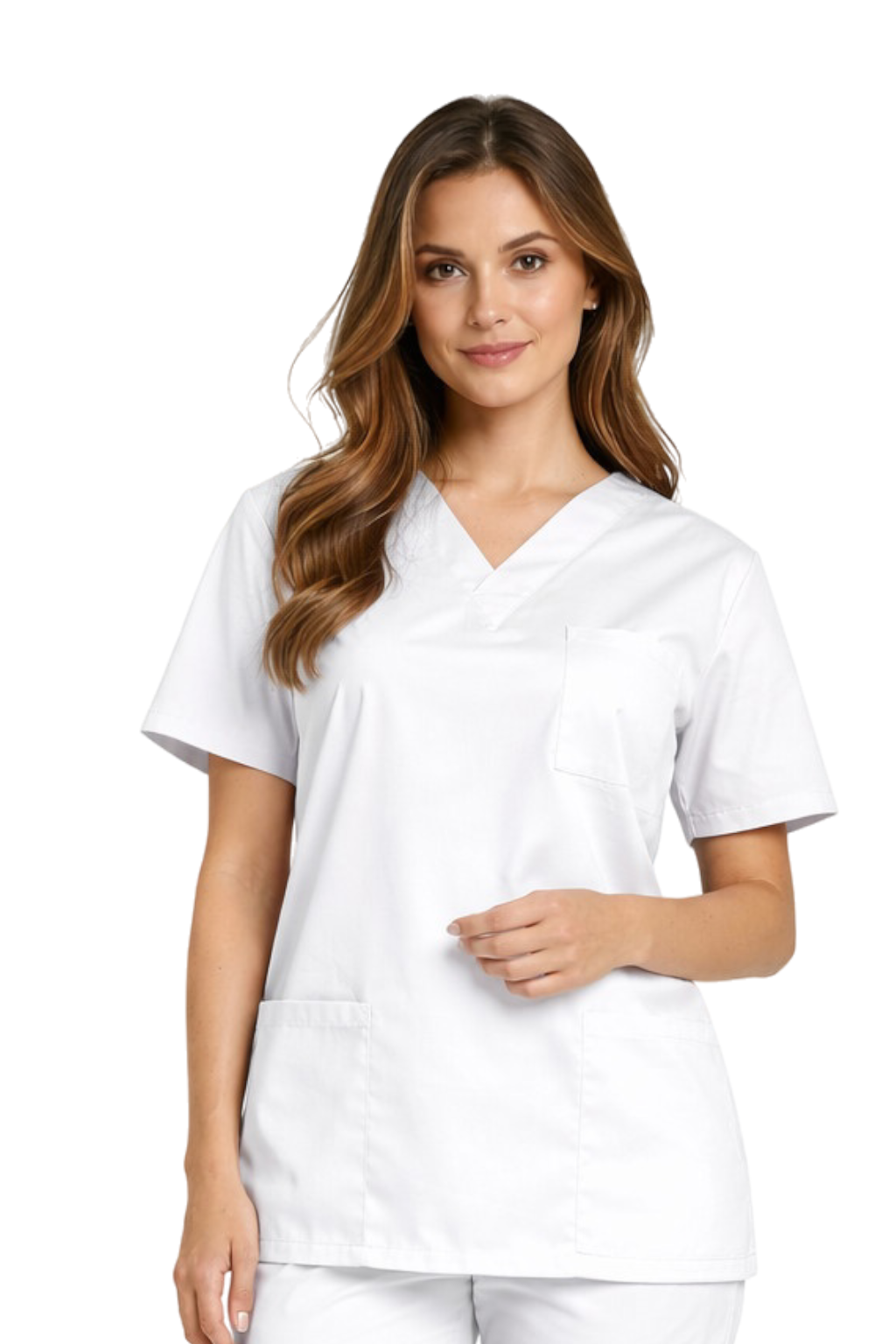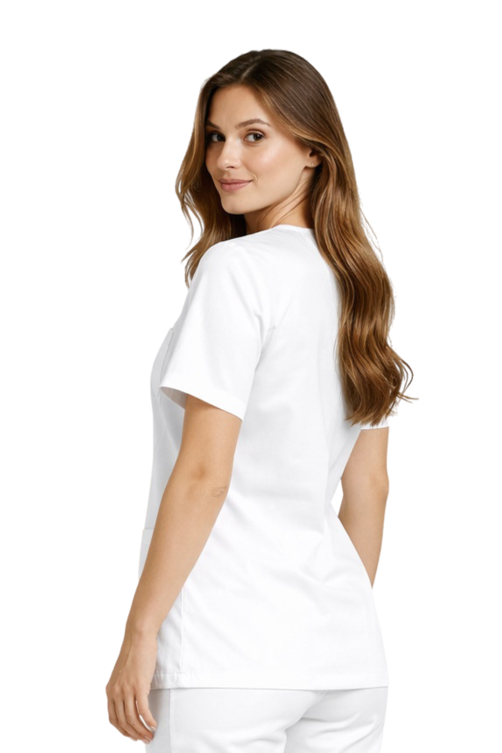 La blouse médicale blanche pour femmes est le choix idéal pour les médecins, les infirmières, les physiothérapeutes et les femmes qui travaillent dans l'industrie de la beauté – dans les spas, les salons de bien-être et les cliniques de médecine esthétique. Conçue spécialement pour les chirurgiens et les instrumentistes, elle garantit un confort et une sécurité totale – sans attaches ou lanières inutiles qui pourraient gêner au travail.