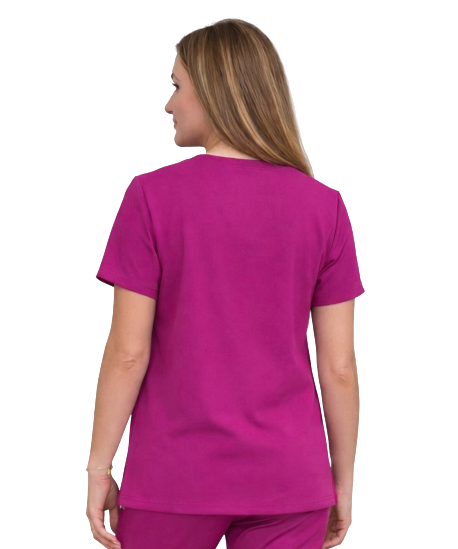 Blouse médicale élégante pour femme CASUAL PREMIUM de couleur pourpre, fabriquée à partir d'un tissu extensible comprenant de la viscose et du spandex. Respirante, douce et confortable, avec un décolleté en cœur, une silhouette cintrée et trois poches pratiques. Idéale pour les médecins, les infirmières et les femmes de l'industrie de la beauté. Investissez dans le confort et le style avec notre blouse médicale Casual Premium.