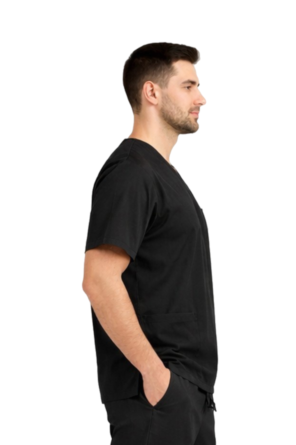 Blouse médicale noire pour homme est le choix idéal pour les médecins, les infirmières, les physiothérapeutes et les hommes travaillant dans l'industrie de la beauté - dans les spas, les salons de bien-être et les cliniques de médecine esthétique. Conçu spécifiquement pour les chirurgiens et les instrumentistes, il garantit un confort et une sécurité totale - sans cordons ou bandes superflues qui pourraient gêner le travail.