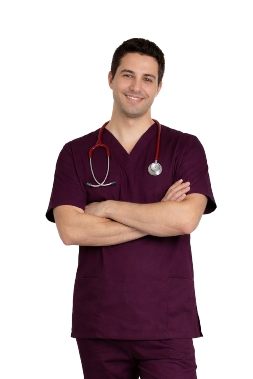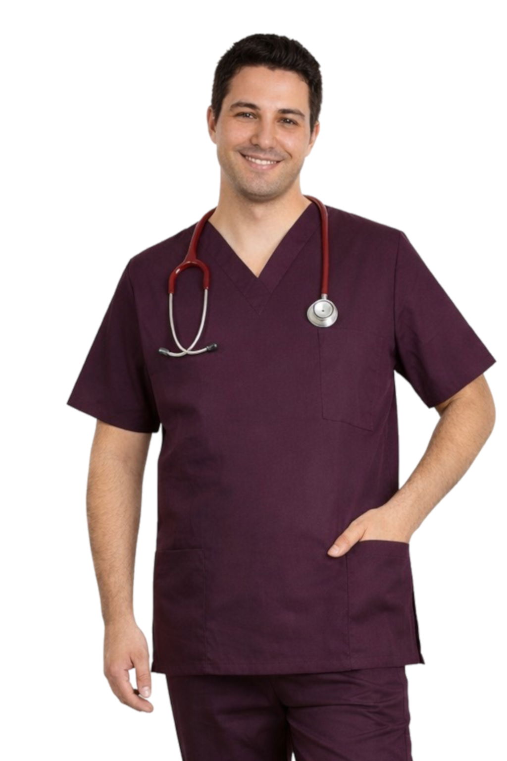 Blouse médicale prune pour homme est le choix idéal pour les médecins, les infirmières, les rééducateurs et les hommes travaille dans l'industrie de la beauté - dans les spas, les salons de bien-être et les cliniques de médecine esthétique. Conçu spécialement pour les chirurgiens et les infirmiers de salle d'opération, il garantit un confort et une sécurité totale - sans ceintures ou sangles inutiles qui pourraient gêner le travail.