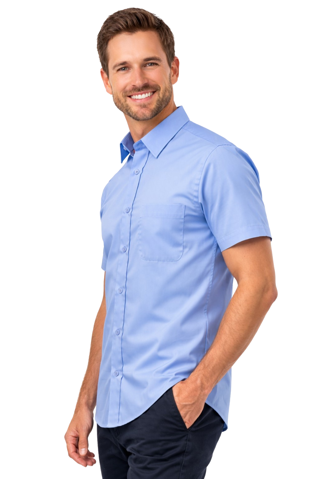 Chemise homme bleue à manches courtes - durable et élégante