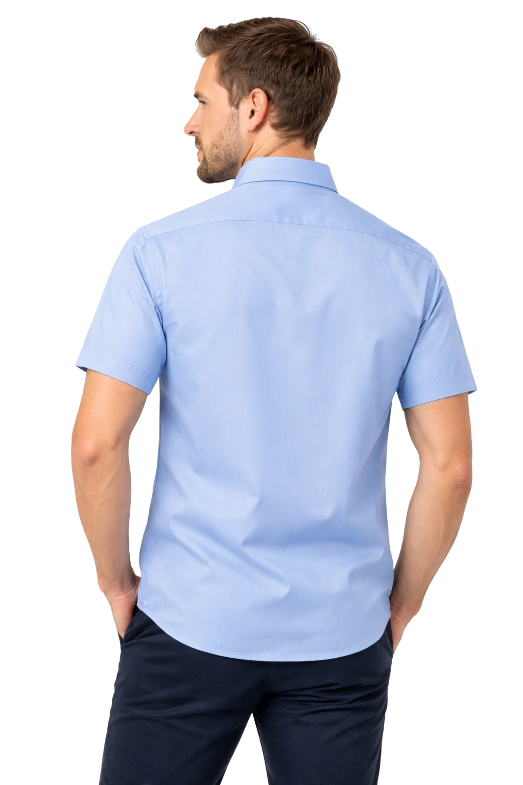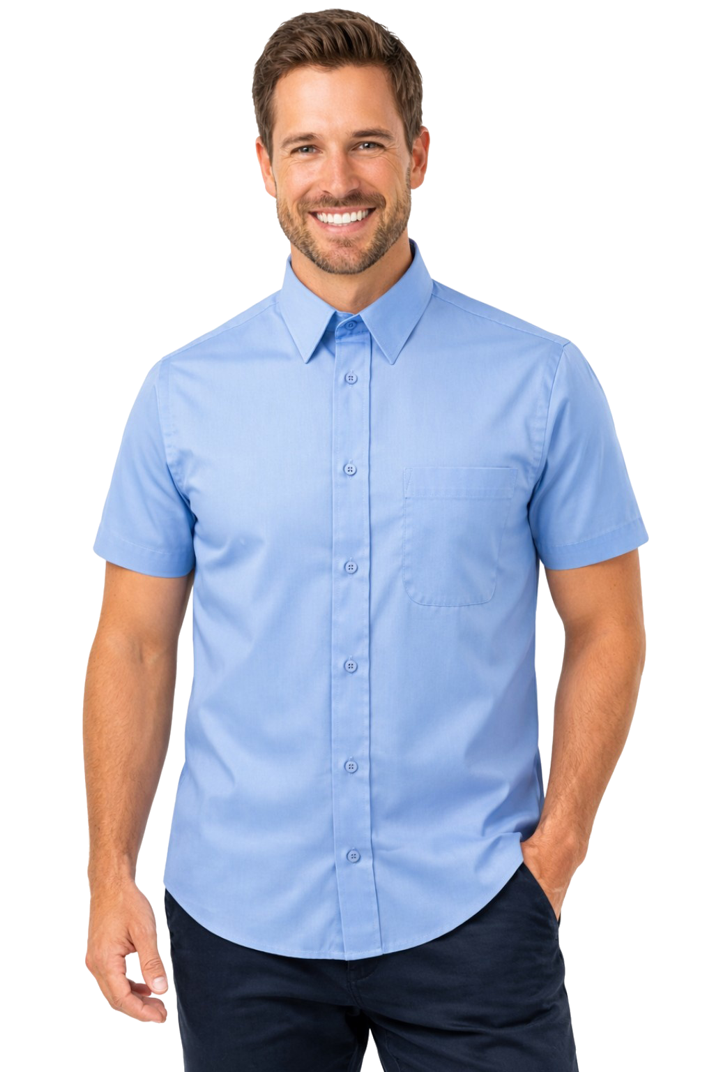 Chemise pour hommes bleue à manches courtes - popeline, durable et élégante