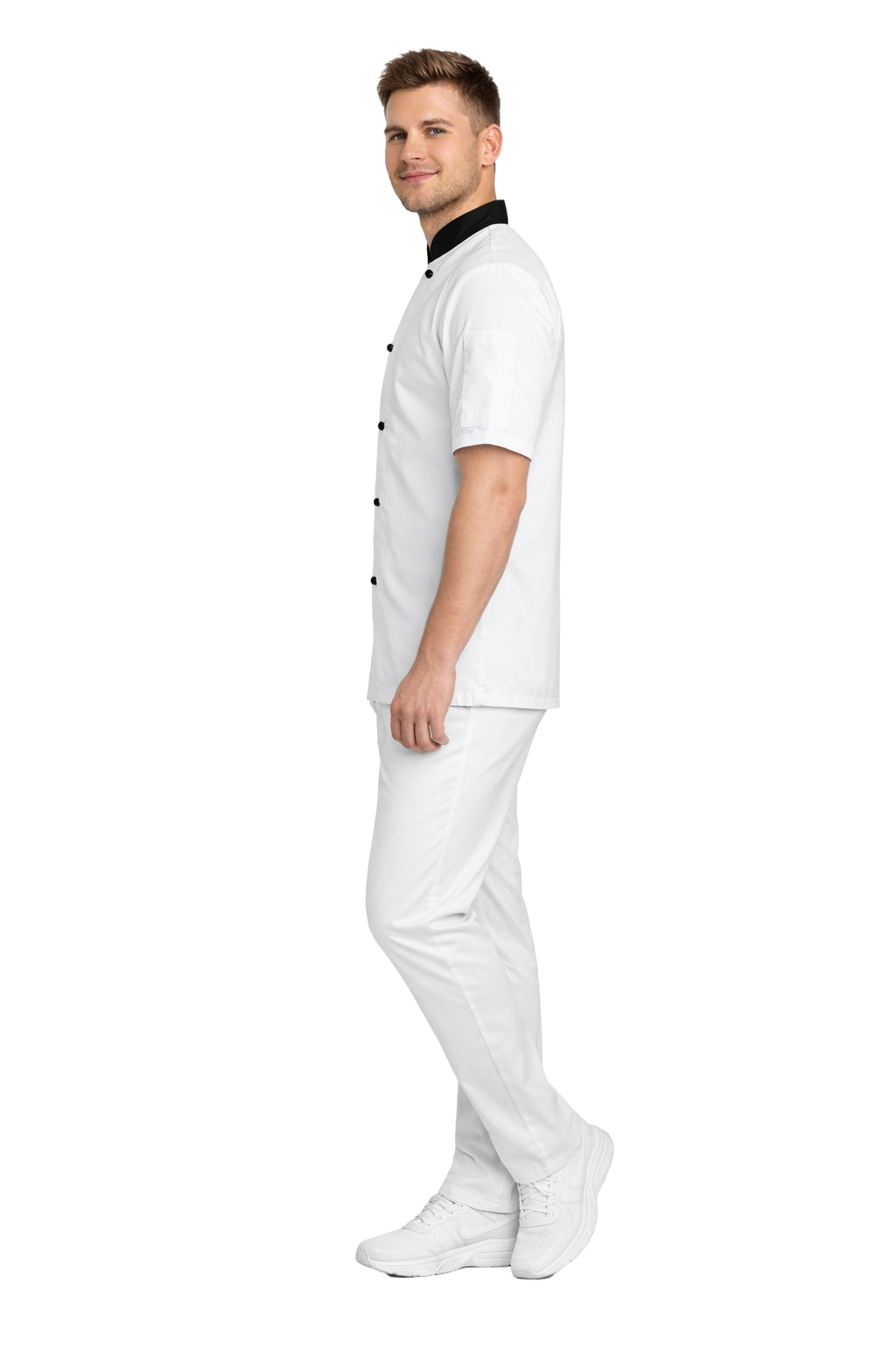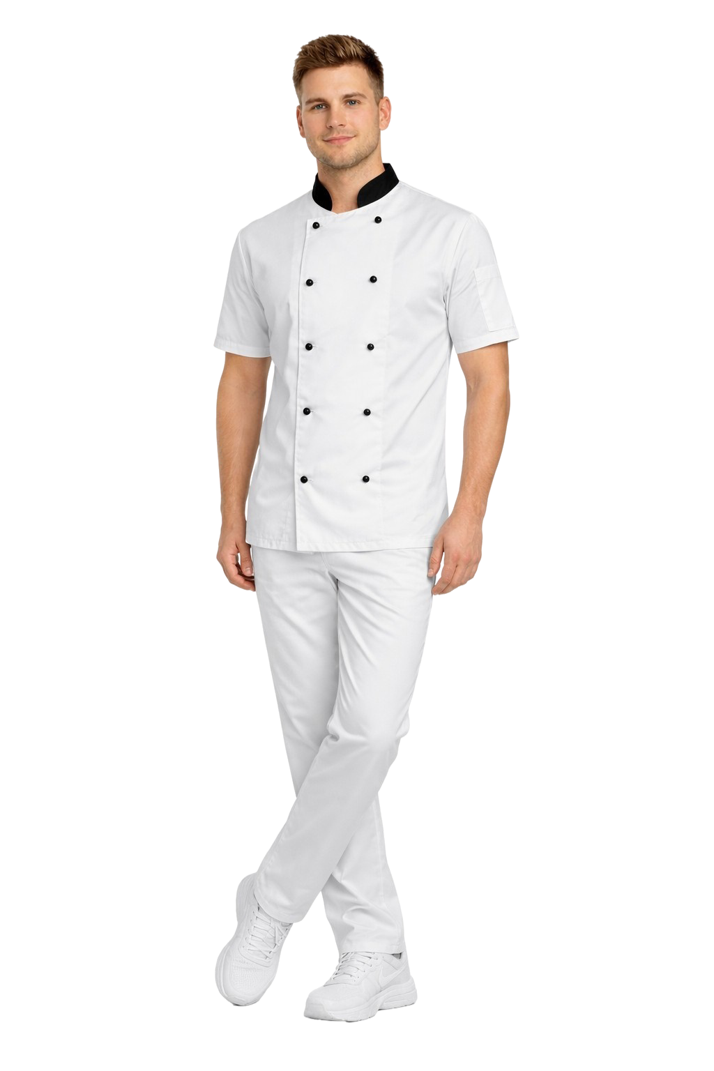 L'ensemble du chef de cuisine a été conçu pour assurer le confort pendant de longues heures de travail en cuisine, tout en présentant une apparence élégante et professionnelle. La coupe appropriée et les tissus durables font que l'uniforme est adapté à un usage quotidien.