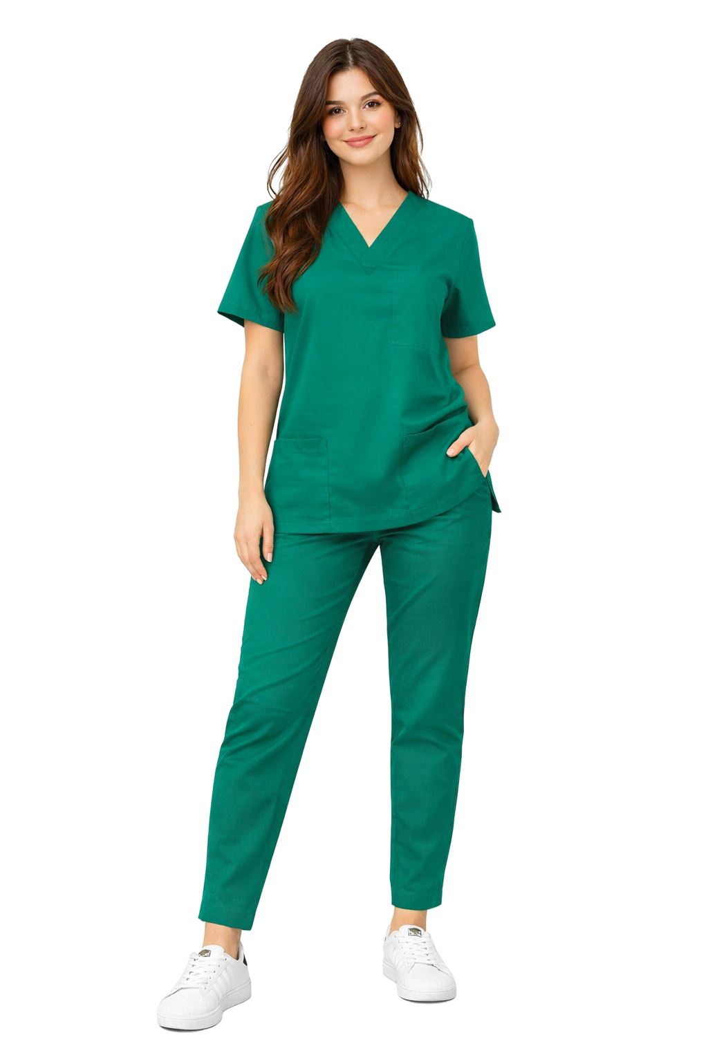 L'ensemble médical 100% coton en couleur vert est un ensemble classique et confortable conçu pour les femmes travaillant dans le secteur médical - médecins, infirmières, rééducateurs et physiothérapeutes. Le tissu naturel d'un poids de 155 g/m² garantit un grand confort à porter toute la journée, tout en permettant à la peau de respirer. Le matériau conserve une couleur intense et une taille stable même après de nombreux lavages.
