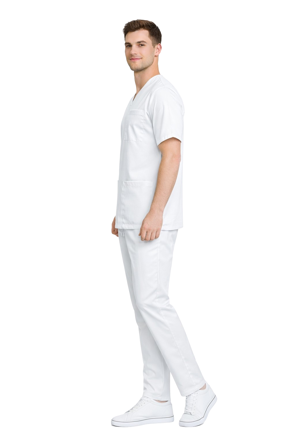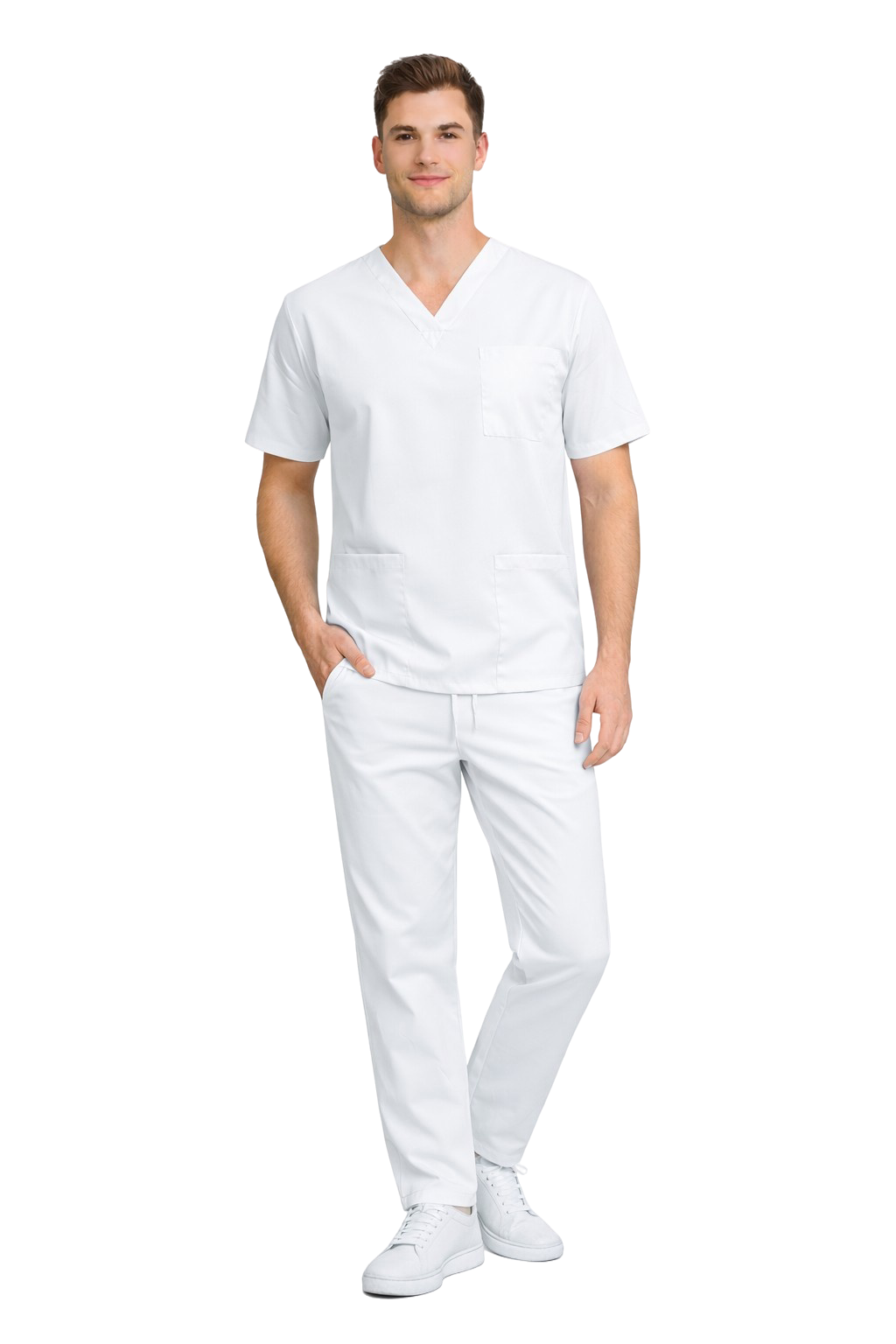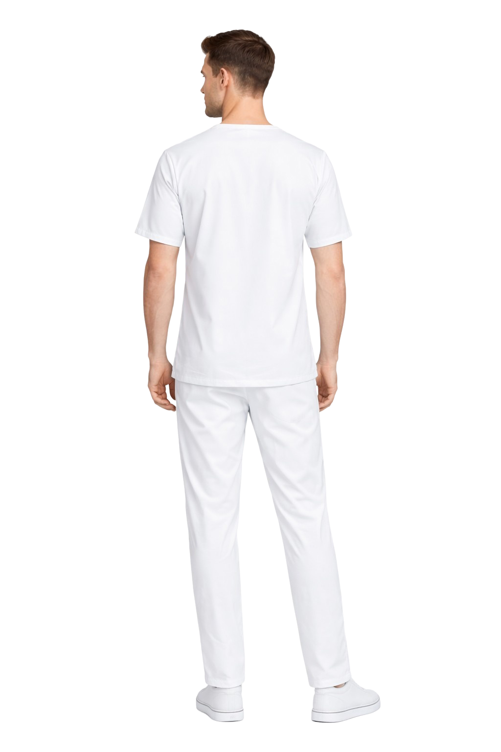 Ensemble médical pour hommes blanc élastique – scrubs premium