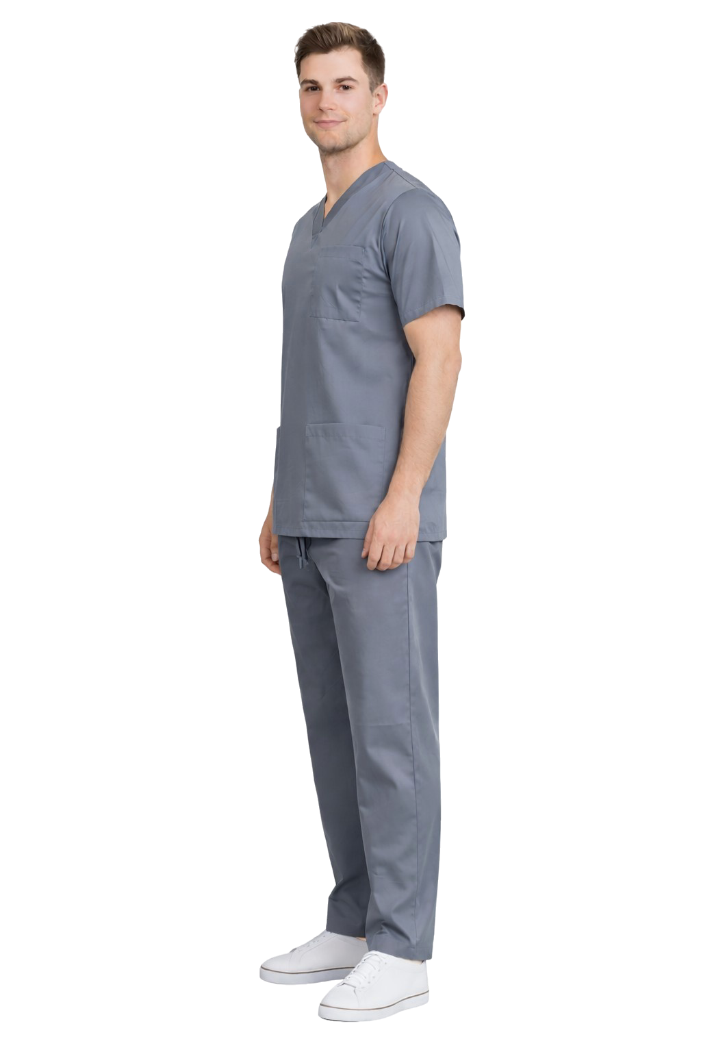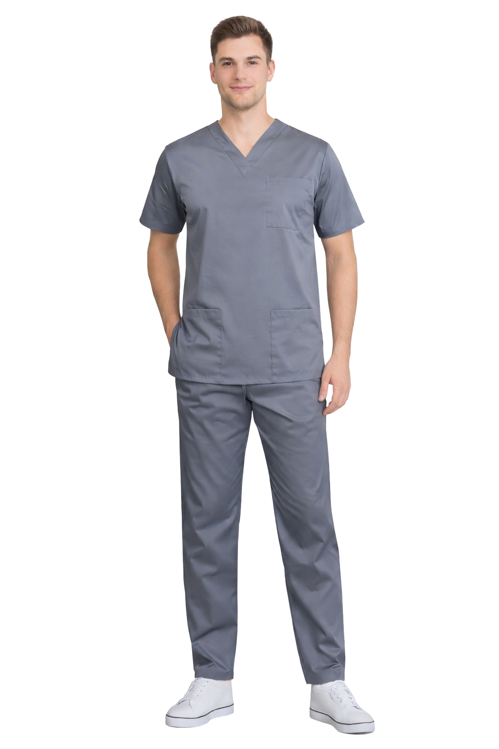 Ensemble médical masculin en gris est un uniforme professionnel conçu pour les médecins, les chirurgiens, les infirmières, les physiothérapeutes et étudiants en médecine. Grâce à l'utilisation de tissu élastique haute qualité contenant de l'élasthanne, la tenue assure confort, durabilité et liberté de mouvement - même pendant les longues heures de service et les procédures médicales exigeantes.