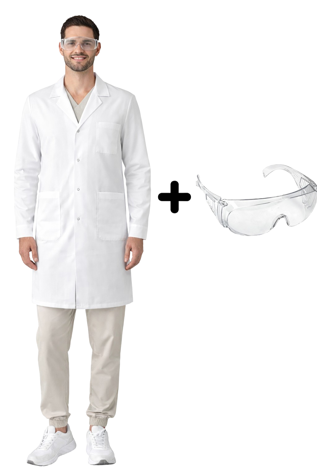 Kit de laboratoire pour homme - blouse médicale à pressions avec lunettes anti-éclaboussures