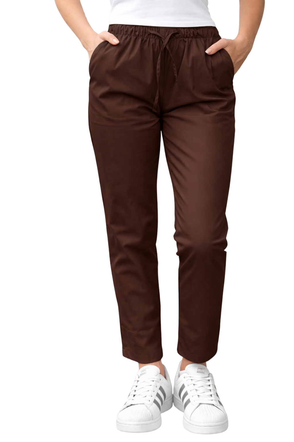 Pantalon de médicine cigarette pour femmes chocolat – élégance et confort au travail