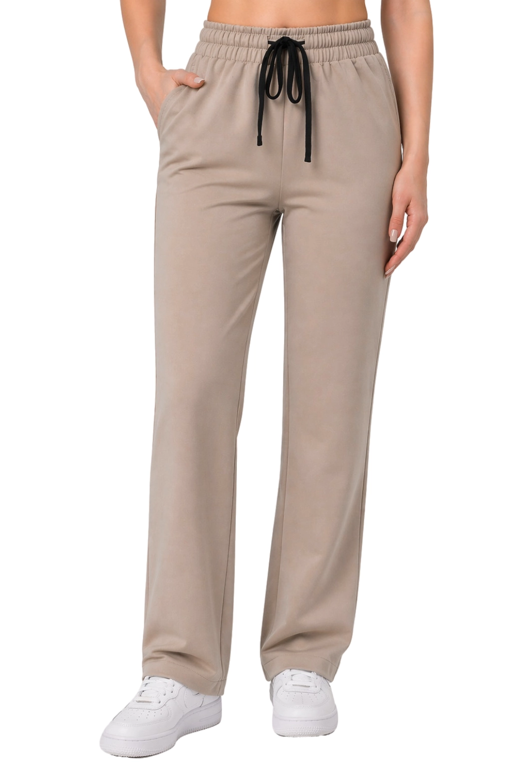 Le modèle a été conçu dans l'esprit du minimalisme fonctionnel - il comporte deux poches pratiques à l'avant qui permettent de garder à portée de main les petits objets indispensables, sans alourdir la silhouette. Une taille élastiquée avec cordon offre un ajustement personnalisé, assurant stabilité et confort tout au long de la journée.