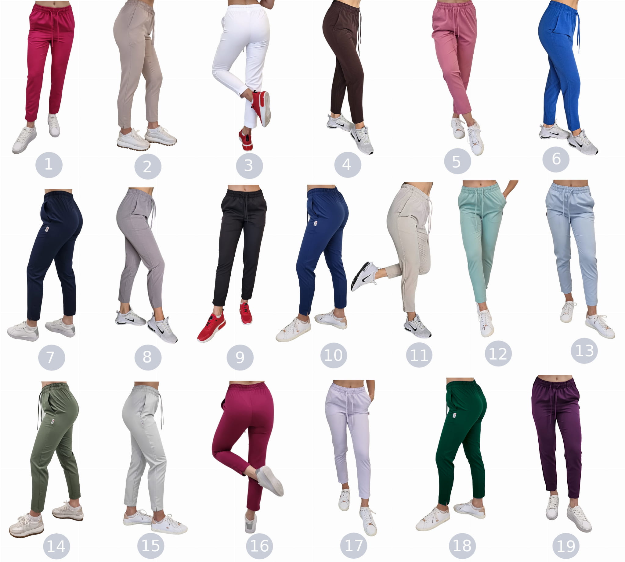La matière du pantalon est aérée, légère et extensible, ce qui permet un ajustement parfait. Nous pouvons affirmer sans crainte qu'il est extrêmement confortable à porter et qu'il n'entrave pas les mouvements. Ce produit est destiné non seulement aux médecins, aux infirmières, aux physiothérapeutes, aux chirurgiens et aux puéricultrices, mais aussi à toutes les femmes travaillant dans le secteur de la beauté, comme les spas, les cliniques de bien-être et de médecine esthétique.