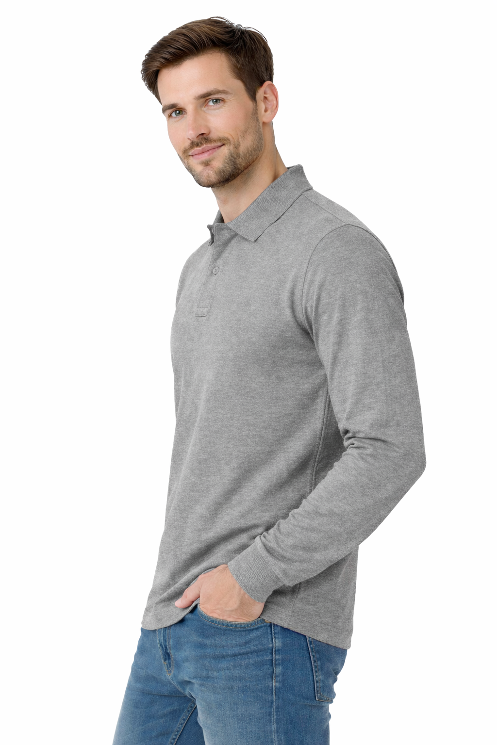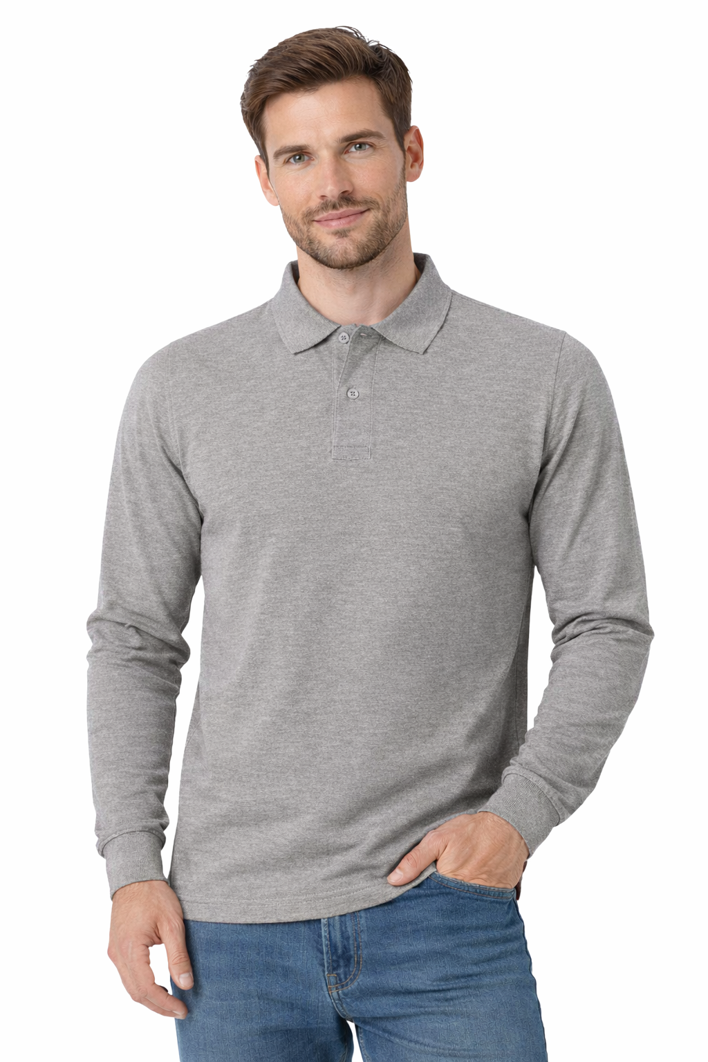 Polo médical gris manches longues