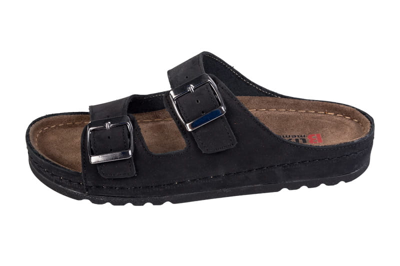 Le modèle BZ110 se ferme à l'aide de deux sangles en cuir, avec un élastique réglable. Supérieur cousu main garantit une grande durabilité de la chaussure. La semelle est fabriquée dans un matériau léger et très souple, qui élimine les micro-chocs créés pendant la marche. Les chaussures ont forme anatomique offrant un soutien à la voûte longitudinale, ainsi qu'une indentation du talon et un enroulement des orteils, tandis que l'avant plus large permet une position détendue des orteils. La doublure est fabriquée à partir de cuir naturel de la plus haute qualité cuir velours, directement sous le rembourrage se trouve MEMORY foam. Les bords plus hauts des tongs assurent la stabilité et la protection du pied, tandis que les semelles antidérapantes garantissent une utilisation sûre.