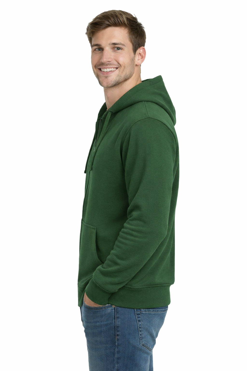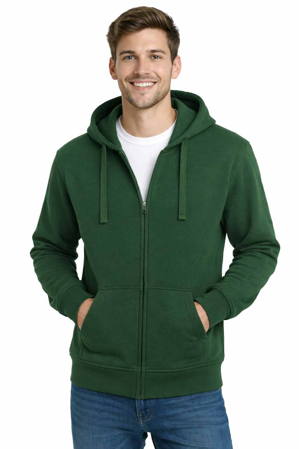 Pull à capuche pour homme en vert bouteille - fermeture à glissière