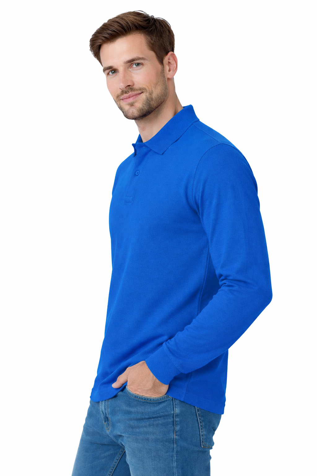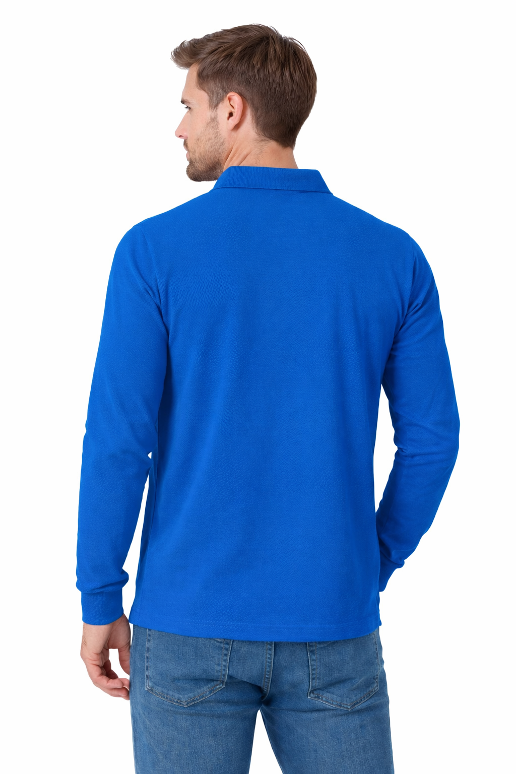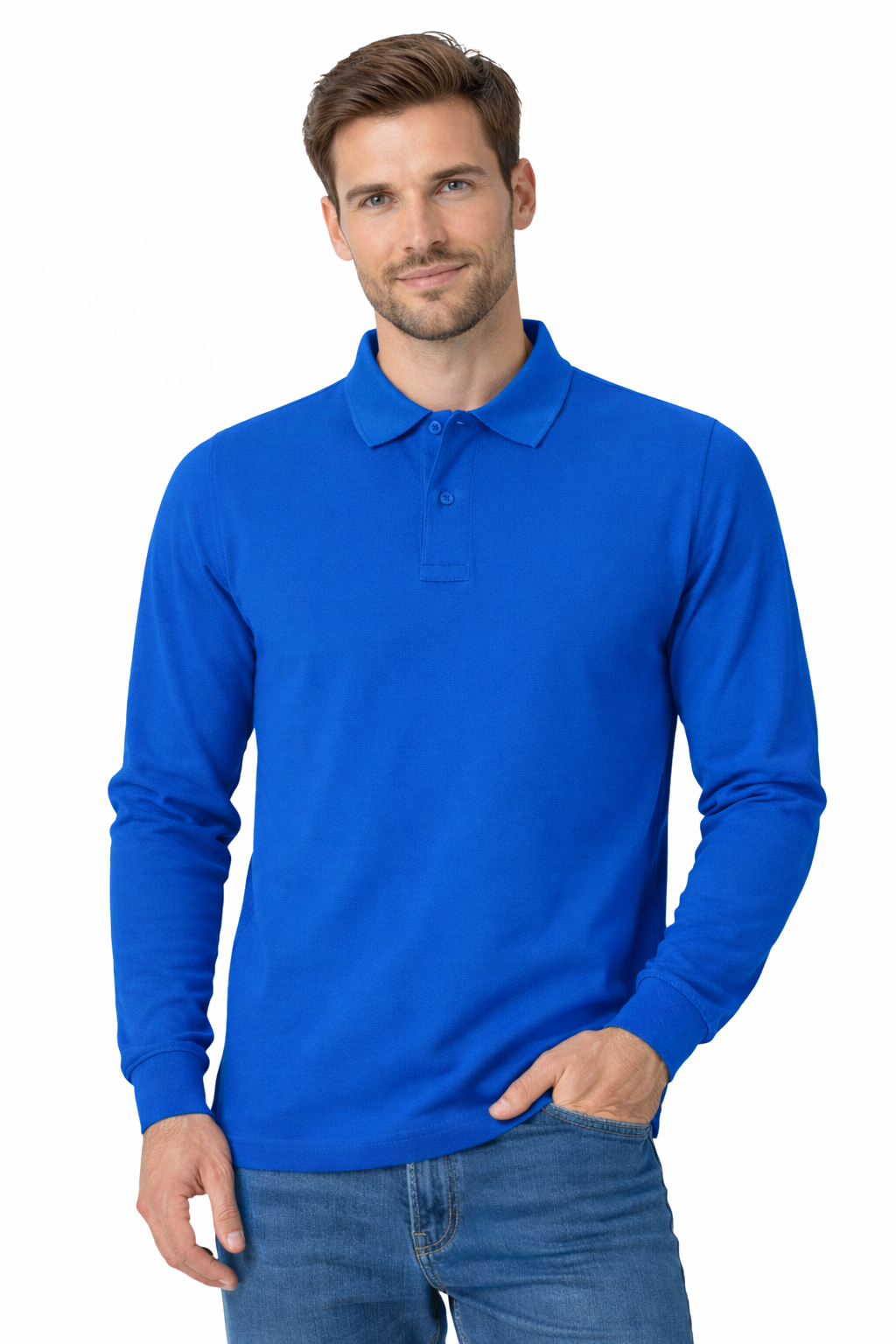 Polo médical homme bleuet à manches longues