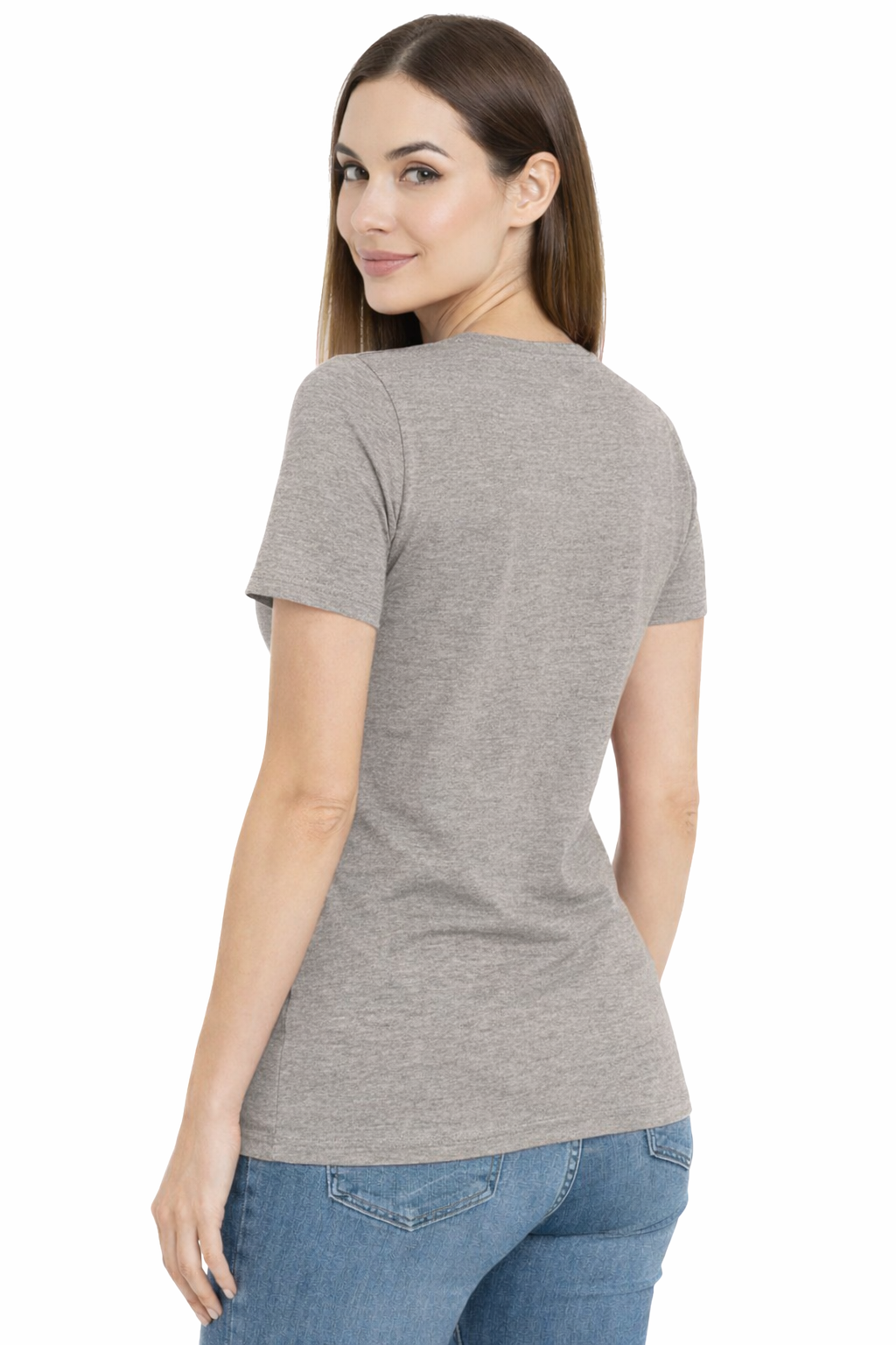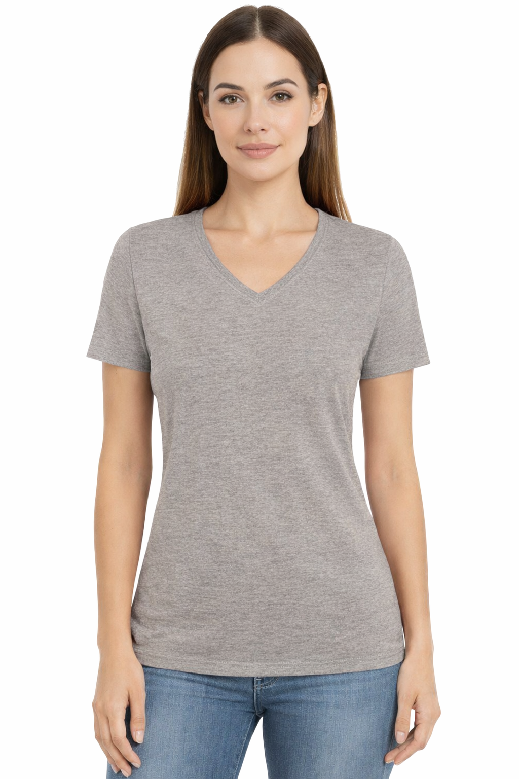 T-shirt à manches courtes - T-shirt en coton pour femmes avec col en V, couleur gris
