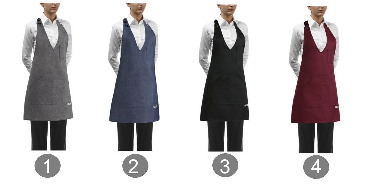 Le tablier est doté d'une grande poche double en bas, ainsi que d'une poche poitrine pratique pour un carnet ou un stylo, utile pour le serveur, le barista ou le sommelier lorsqu'il passe une commande.