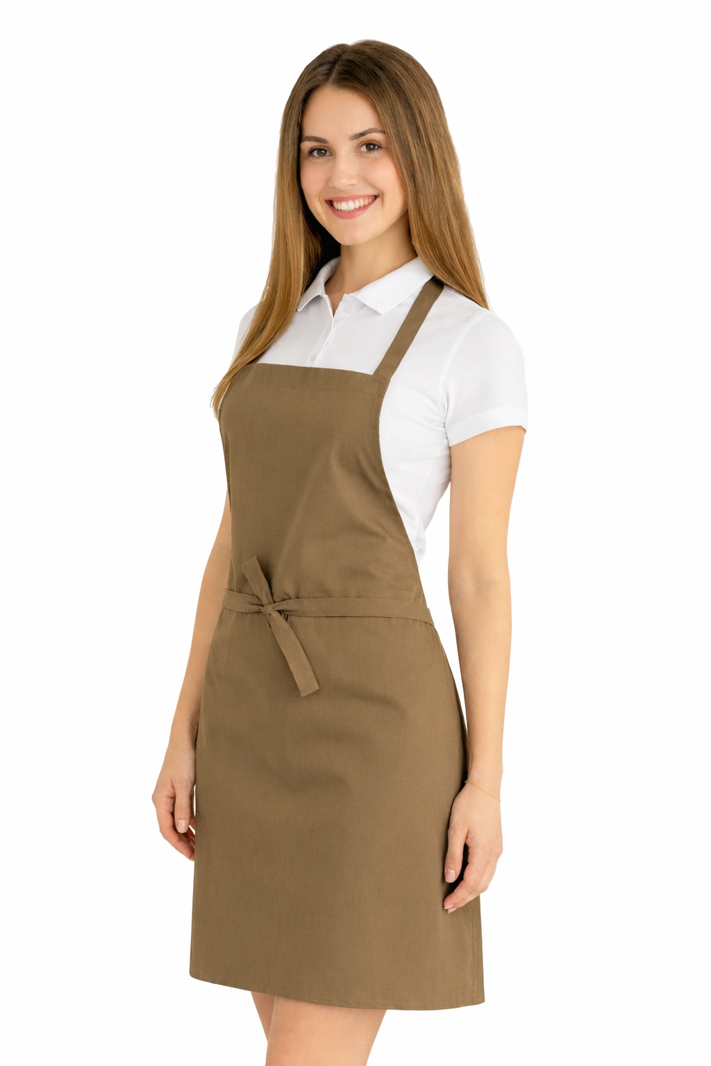 Le tablier est fabriqué à partir d'un mélange de 50% de coton et 50% de polyester pesant entre 165–185 g/m². Il est donc léger, respirant et résistant aux lavages fréquents. Il peut être lavé à une température de 65°C, ce qui permet de maintenir l'hygiène et la fraîcheur. La couleur beige reste intense même après de nombreux lavages, et le matériau ne rétrécit pas et ne perd pas sa forme.