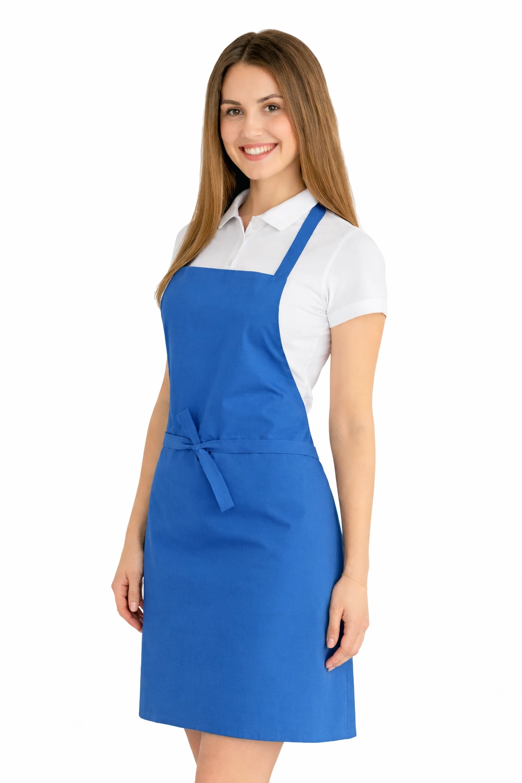 Le tablier a été fabriqué à partir d'un mélange de 50% coton et 50% polyester avec un poids de 165–185 g/m². Par conséquent, il est léger, respirant et en même temps résistant aux lavages fréquents. Il peut être lavé à une température jusqu'à 65°C, ce qui permet de maintenir l'hygiène et la fraîcheur. La couleur bleu clair reste intense même après de nombreux lavages, et le matériau ne se rétrécit pas et ne perd pas sa forme.