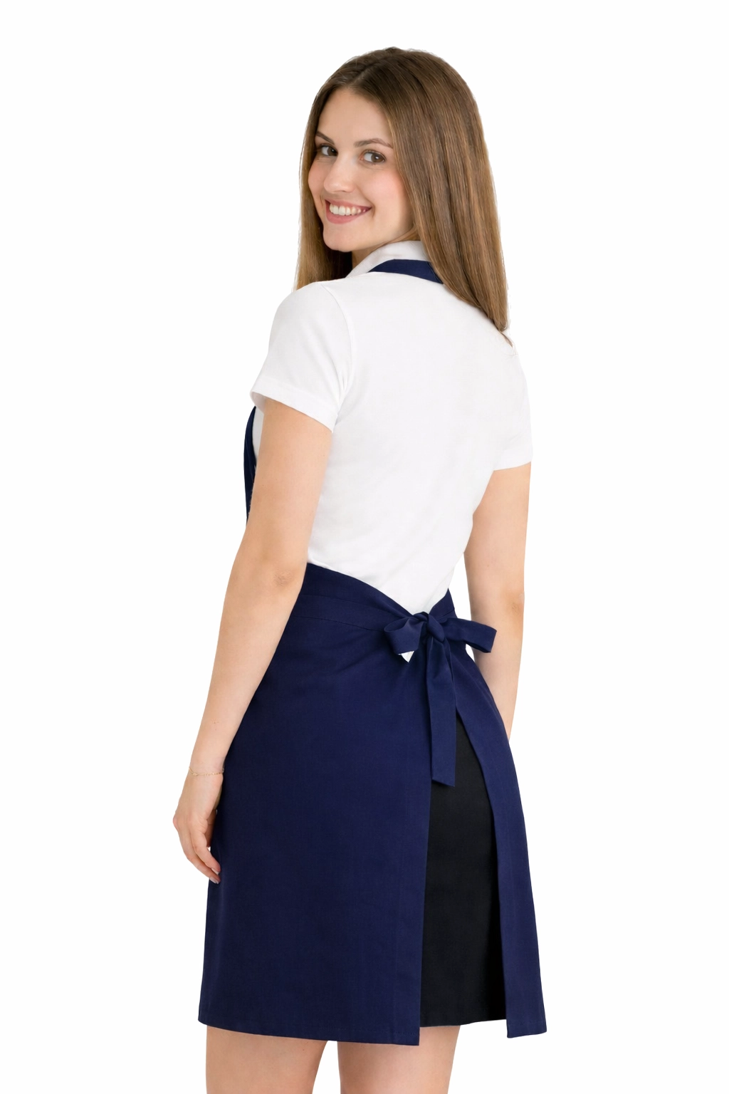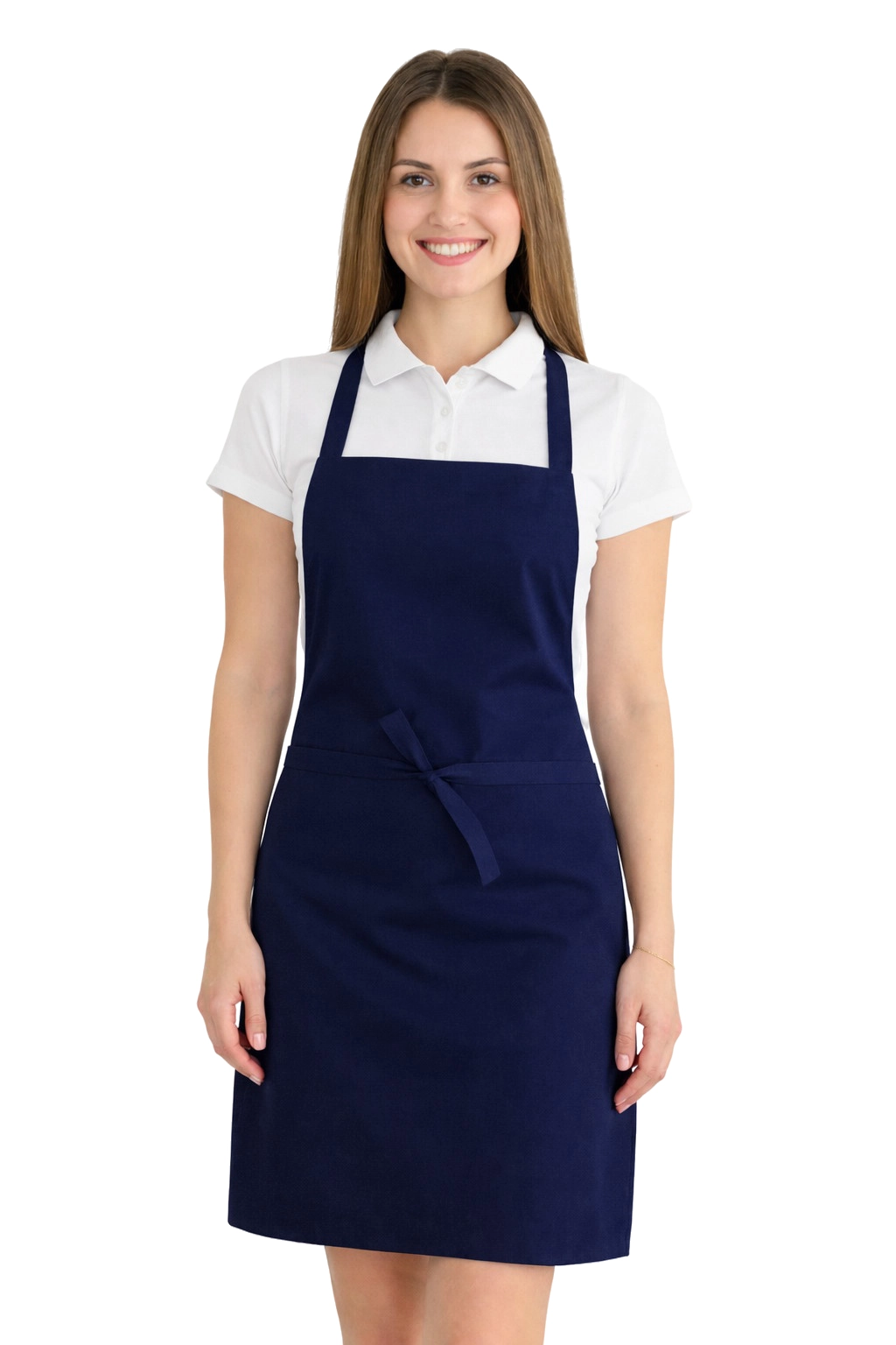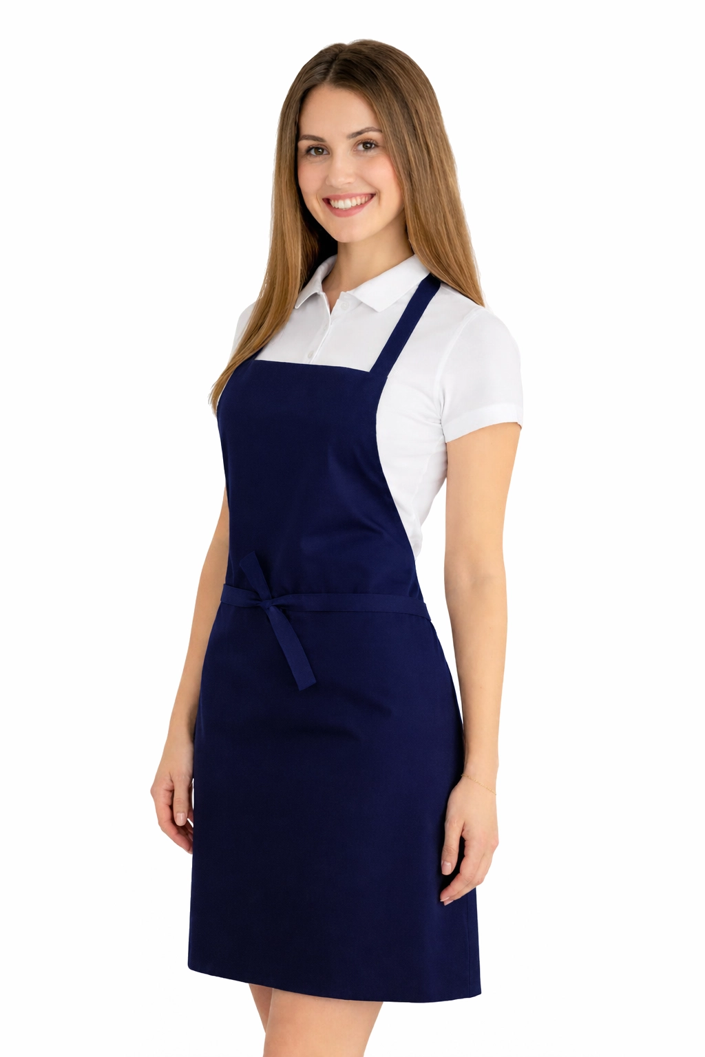 Le tablier a été fabriqué à partir d'un mélange de 50% coton et 50% polyester d'un poids de 165–185 g/m². Grâce à cela, il est léger, aéré et en même temps résistant aux lavages fréquents. Il peut être lavé à une température allant jusqu'à 65°C, ce qui permet de maintenir l'hygiène et la fraîcheur. Le bleu marine reste intense même après de nombreux lavages et le tissu ne rétrécit pas et ne perd pas sa forme.
