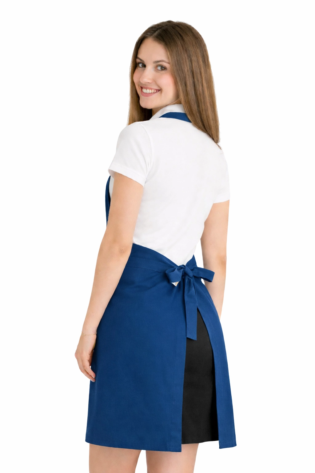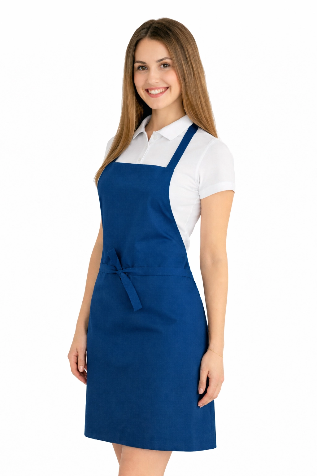 Le tablier est fabriqué dans un mélange de 50% coton et 50% polyester d'un grammage de 165-185 g/m². Il est donc léger, aéré et résistant aux lavages fréquents. Il peut être lavé à une température allant jusqu'à 65°C, ce qui permet de maintenir l'hygiène et la fraîcheur. La couleur bleue reste intense même après de nombreux lavages, et le matériau ne rétrécit pas et ne perd pas sa forme.
