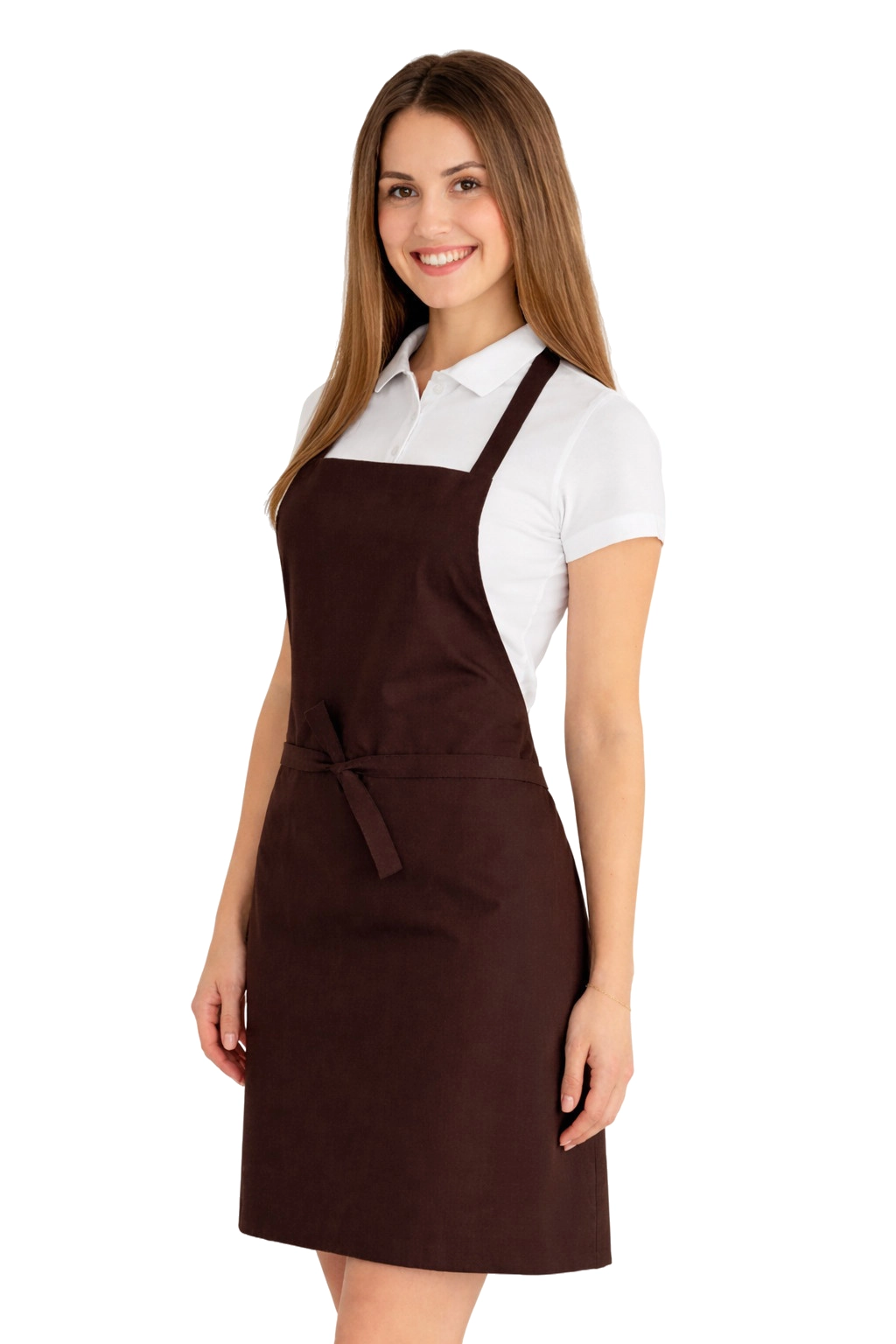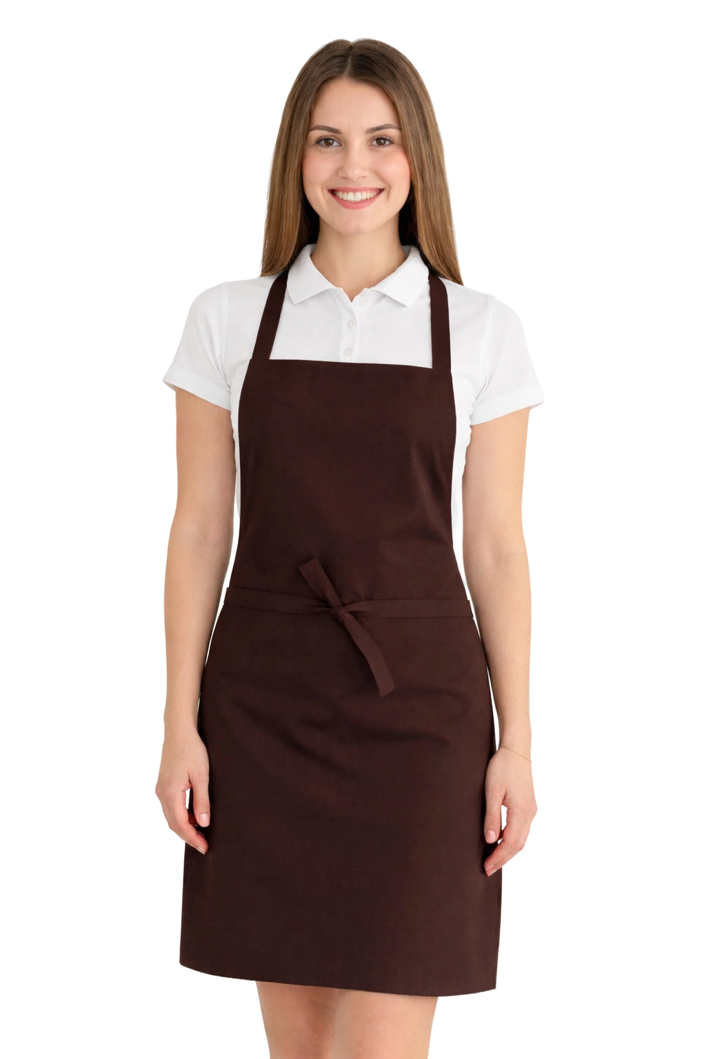 Le tablier est fabriqué à partir d'un mélange de 50% de coton et 50% de polyester, avec un grammage de 165–185 g/m². Il est donc léger, aéré et résistant à des lavages fréquents. Il peut être lavé à une température allant jusqu'à 65°C, permettant de maintenir l'hygiène et la fraîcheur. Le brun foncé reste intense même après de nombreux lavages, et le matériau ne se rétrécit pas et ne perd pas sa forme.