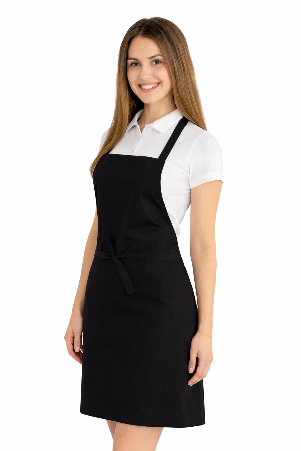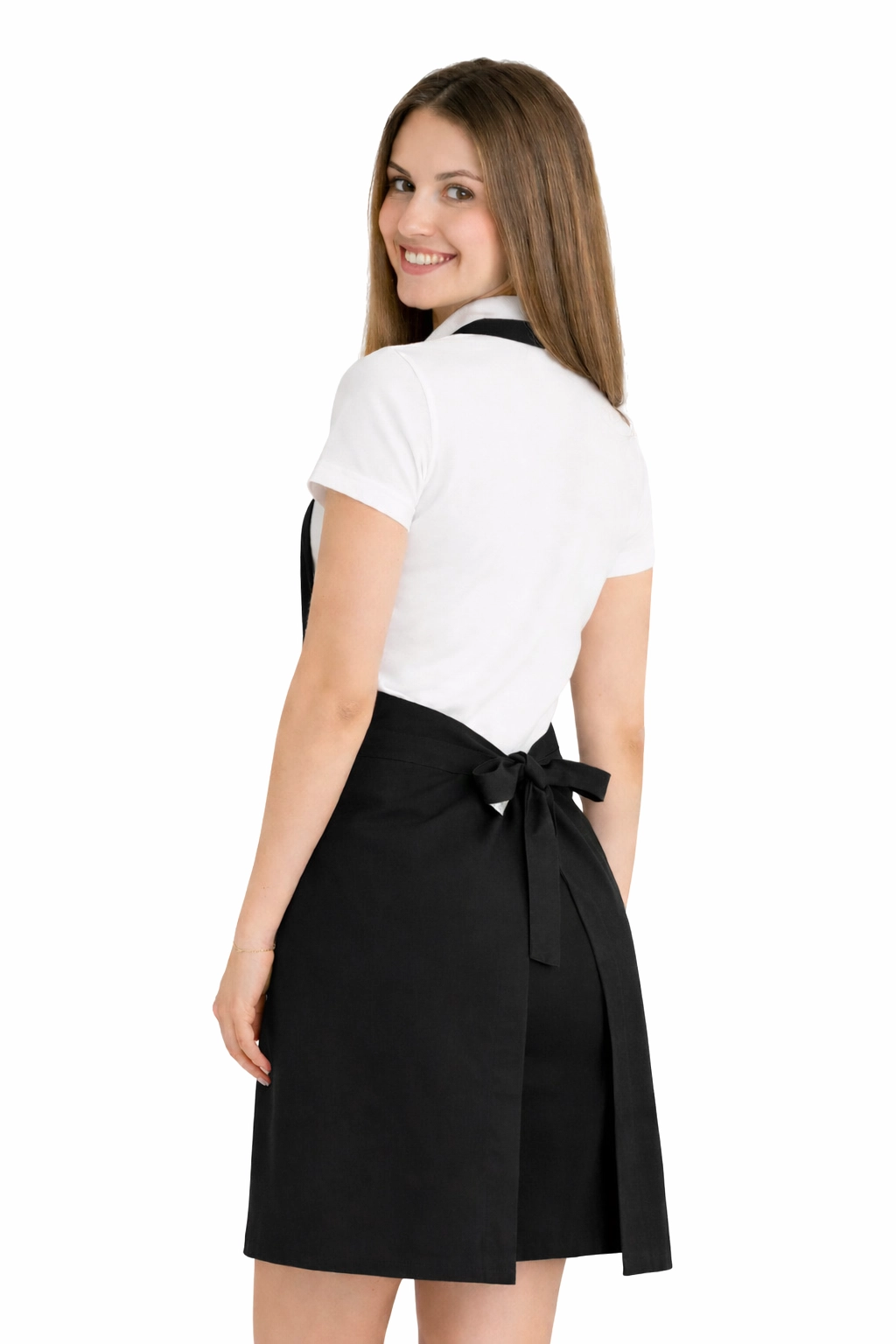 Le tablier est fabriqué à partir d'un mélange de 50% coton et 50% polyester d'un poids de 165–185 g/m². Il est donc léger, aéré et résistant aux lavages fréquents. Il peut être lavé à une température de 65°C, ce qui permet de maintenir l'hygiène et la fraîcheur. Le noir reste intense même après de nombreux lavages, et le matériau ne rétrécit pas et ne perd pas sa forme.