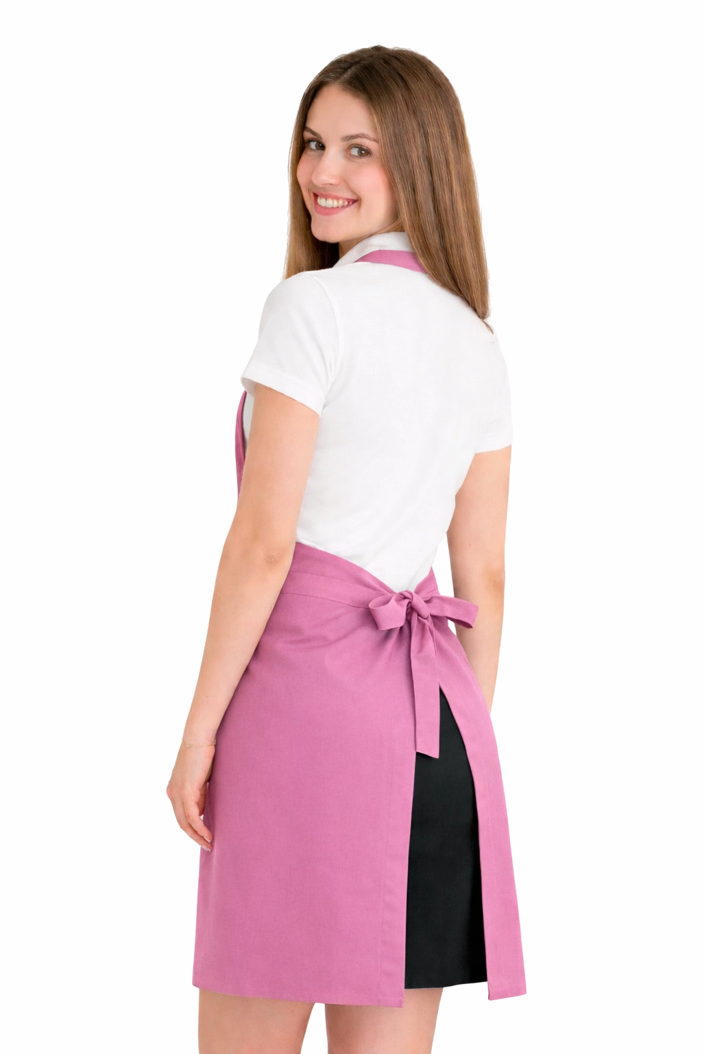 Le tablier est fait d'un mélange de 50% coton et 50% polyester avec un poids de 165–185 g/m². Grâce à cela, il est léger, respirant et en même temps résistant aux lavages fréquents. Il peut être lavé à une température de 65°C, ce qui permet de maintenir l'hygiène et la fraîcheur. La couleur rose claire reste intense même après de nombreux lavages, et le matériau ne se rétrécit pas et ne perd pas sa forme.