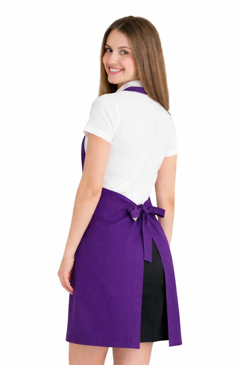 Le tablier est fabriqué à partir d'un mélange de 50% coton et 50% polyester avec un grammage de 165–185 g/m². Il est donc léger, respirant et résistant au lavage fréquent. Il peut être lavé à une température allant jusqu'à 65°C, ce qui permet de maintenir une hygiène et une fraîcheur optimales. La couleur violette reste intense même après de nombreux lavages et le tissu ne rétrécit pas et ne perd pas sa forme.