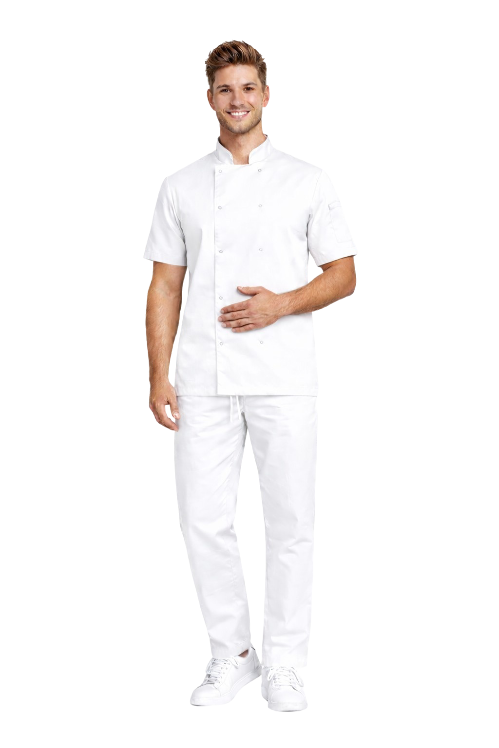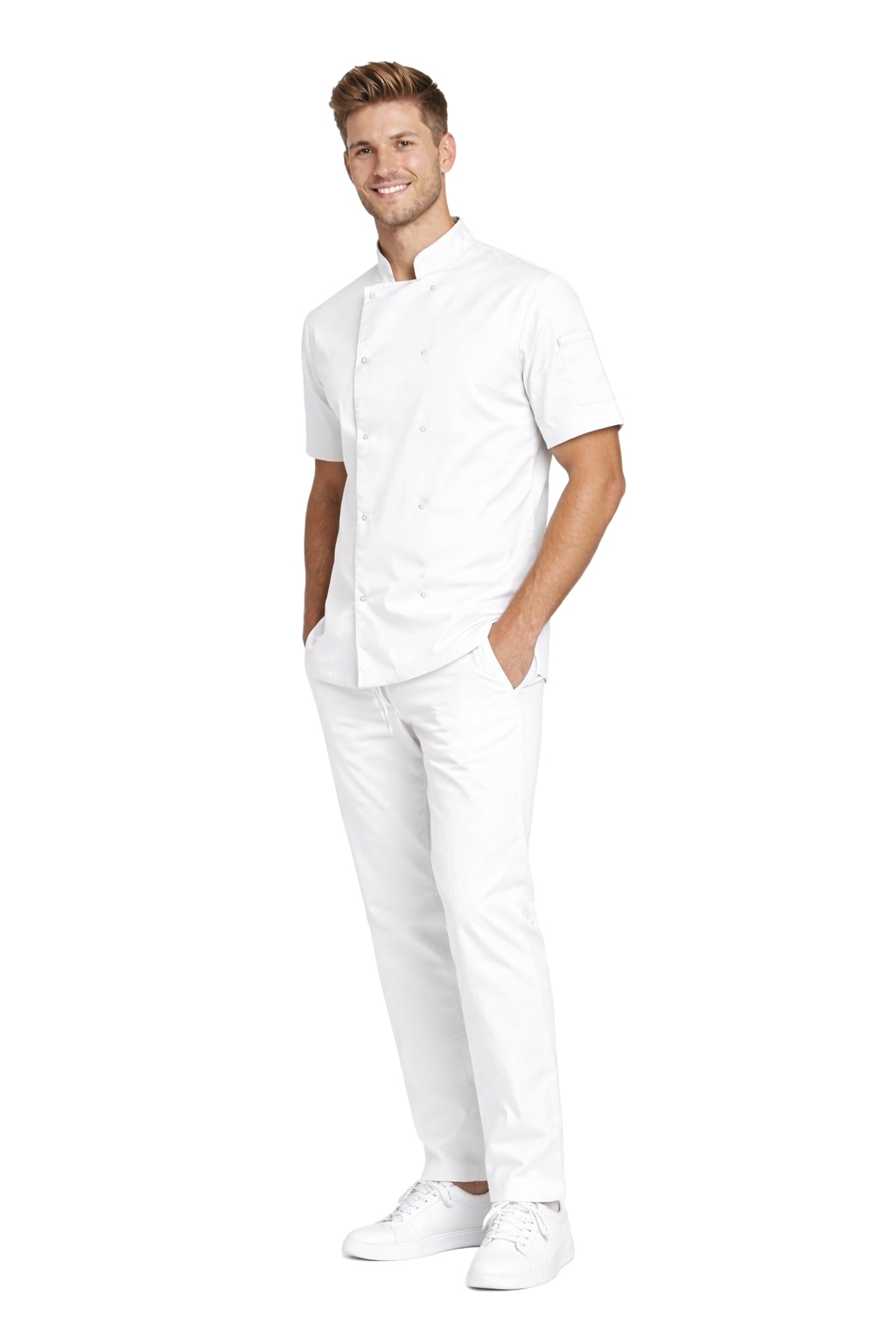 Grâce à l'utilisation de tissus avec de l'élasthanne, l'ensemble assure un grand confort de travail, une apparence esthétique et une totale liberté de mouvement, ce qui est crucial dans un environnement de cuisine dynamique.