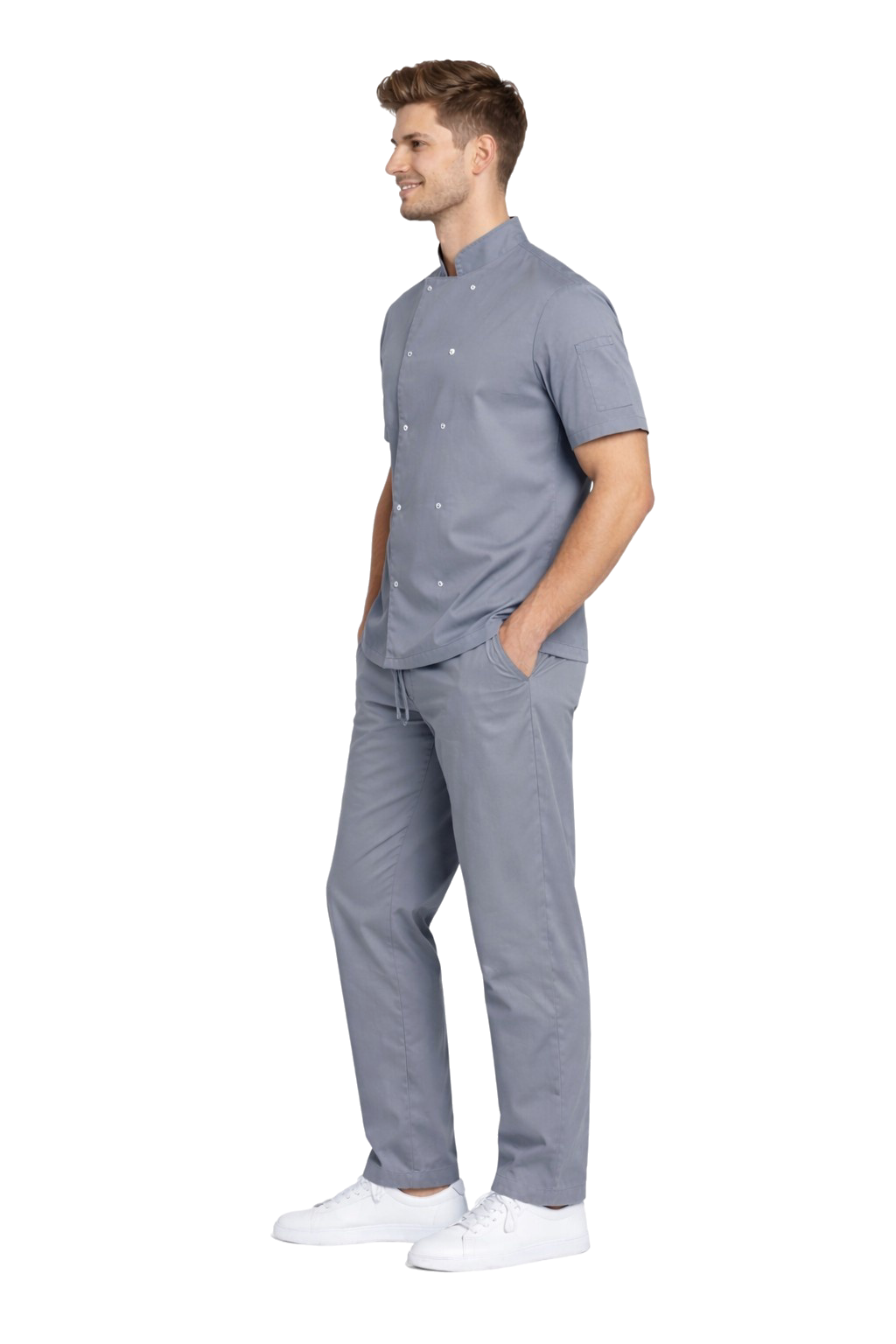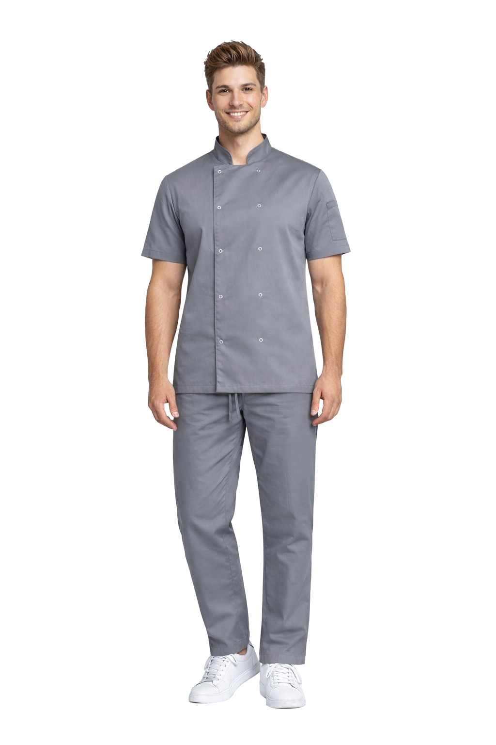 Grâce à l'utilisation de tissus avec un ajout d'élasthanne, l'ensemble offre un haut niveau de confort de travail, un aspect esthétique et une totale liberté de mouvement, ce qui est essentiel dans un environnement de cuisine dynamique.