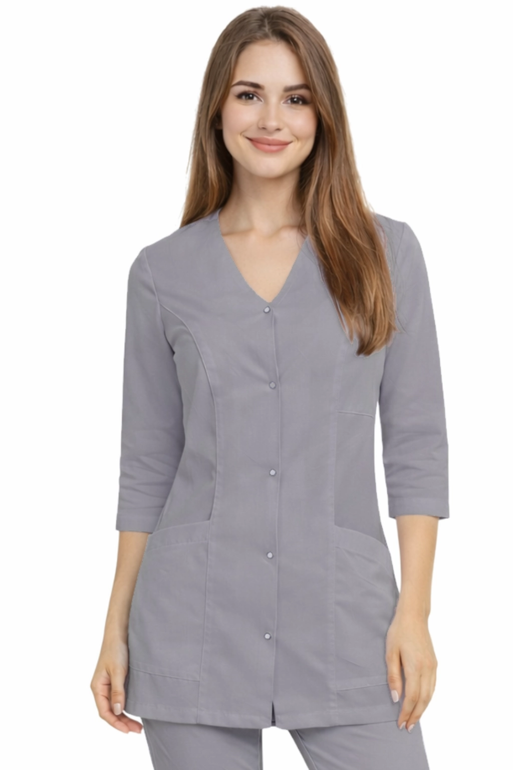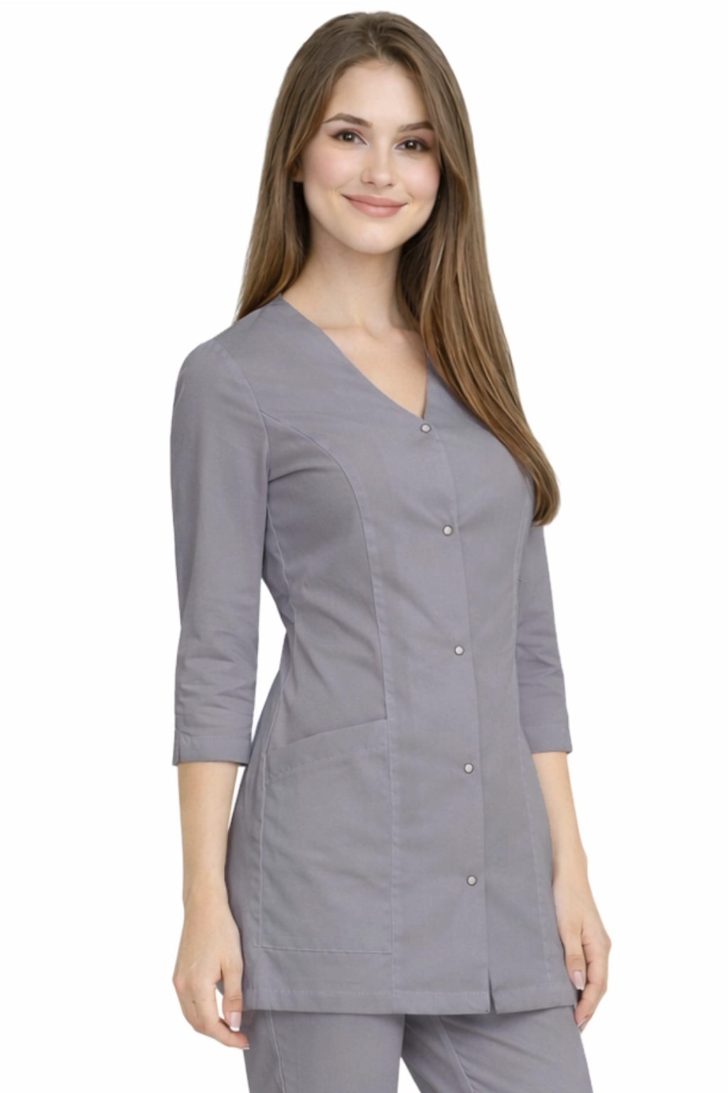 La veste médicale pour femme CASUAL PREMIUM de couleur gris foncé est une proposition élégante et fonctionnelle pour les femmes travaillant dans le domaine médical, cosmétique et beauté. Le modèle combine un aspect professionnel avec le confort d'utilisation, ce qui le rend parfaitement adapté aux cabinets médicaux, cliniques de médecine esthétique, ainsi qu'aux salons de beauté, SPA ou à la réception.