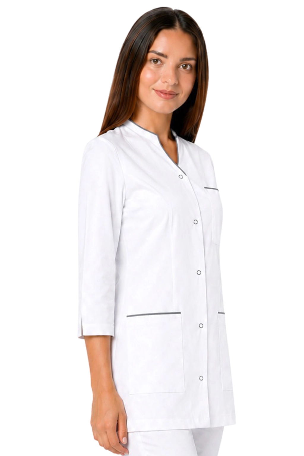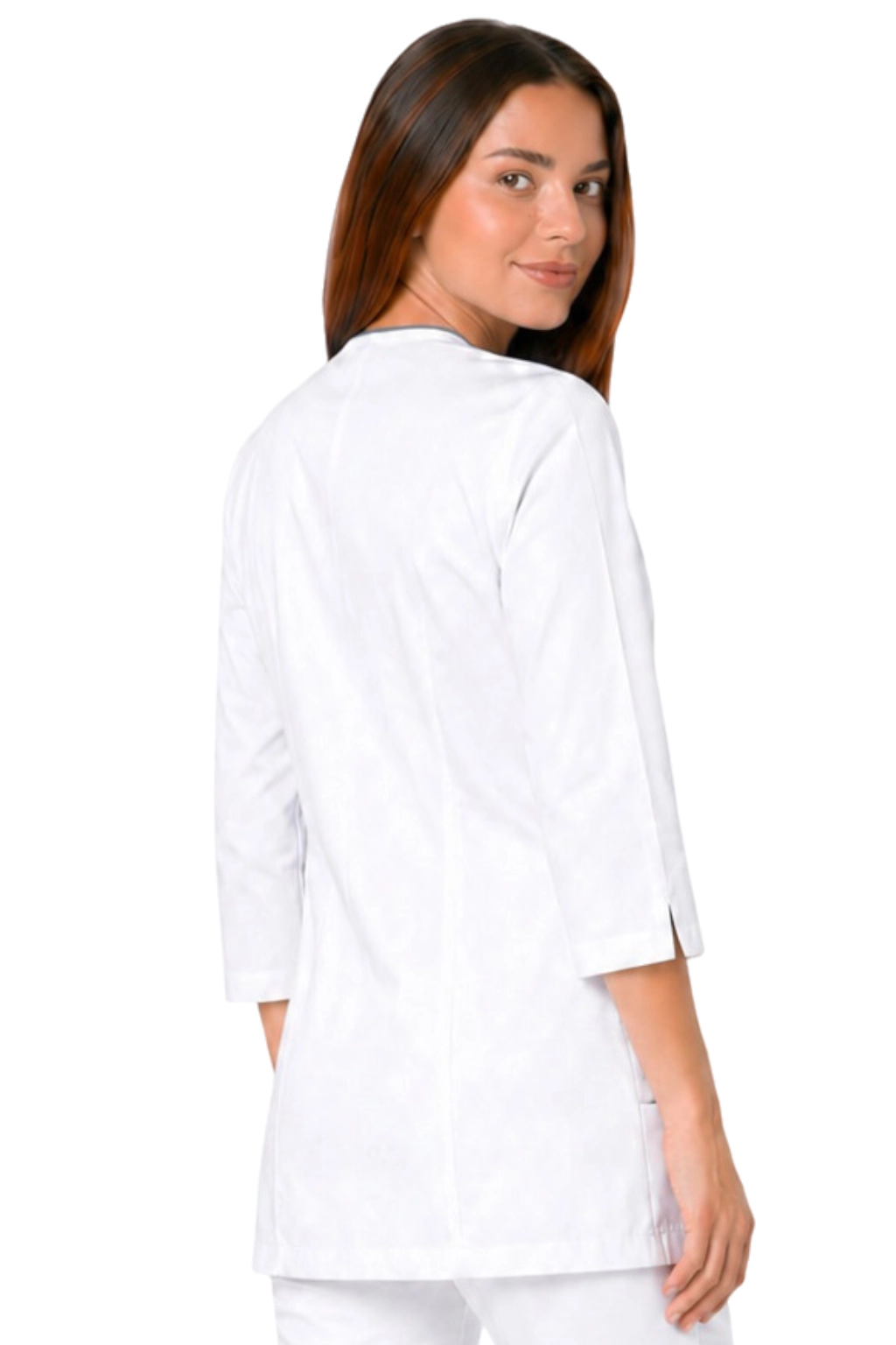 Veste médicale femme manches 3/4 blanche avec passepoil gris